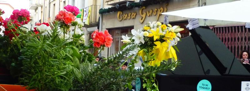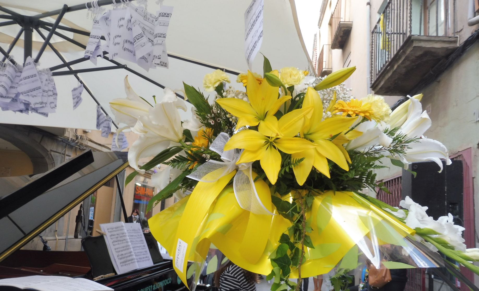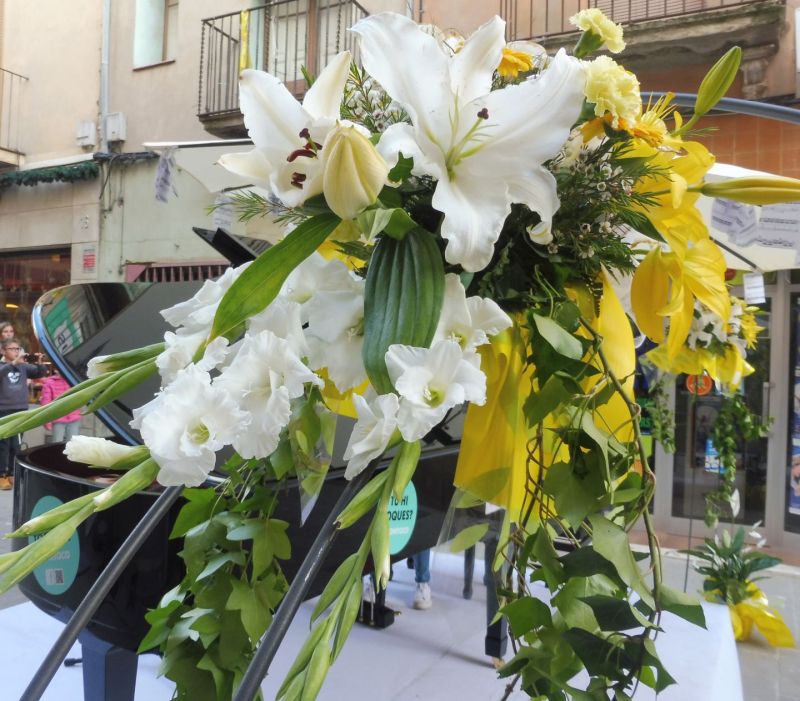 Dos varen ser els pianos que protagonitzaren l’activitat. Aquest, ja situal al carrer General Güell feia molt goig amb l’ambientació floral.