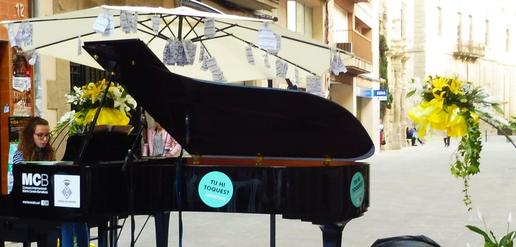 En la sisena edició de “El Maria canals porta cua” més d’un miler d’estudiants de Guissona, Sant Guim, Ribera d’Ondara, Sant Ramon i Cervera van passar el dia 4 de maig pels pianos de cua que es van instal·lar al centre històric de Cervera.