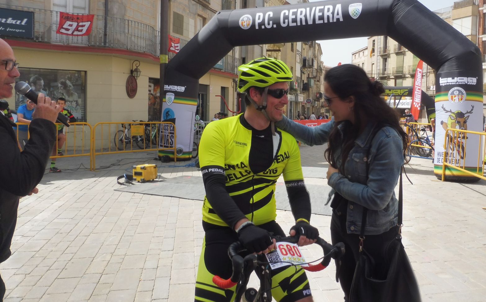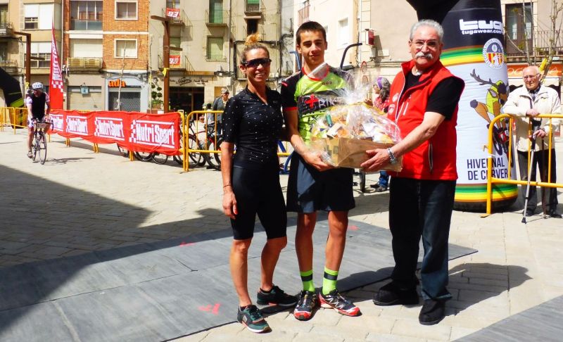 El jove cerverí Emili Font Farré va ser el guanyador de la Clàssica dels Murs en la modalitat del circuit curt, de 94 km. va fer un temps de 2:41:43. Josep Guardia president de la Penya Ciclista, a qui vèiem ja força refet de l’accident que va patir, li entrega el premi.