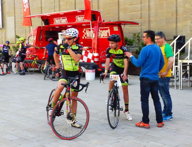 Emili Font pare, conegut esportista de la bicicleta, acompanya el seu fill que va ser el gunayador de la Clàssica dels Murs en el tram curt, que deunidó el llarg que era. Cal felicitar-lo per haver esperonat l’afició d’aquest jove envers el ciclisme.