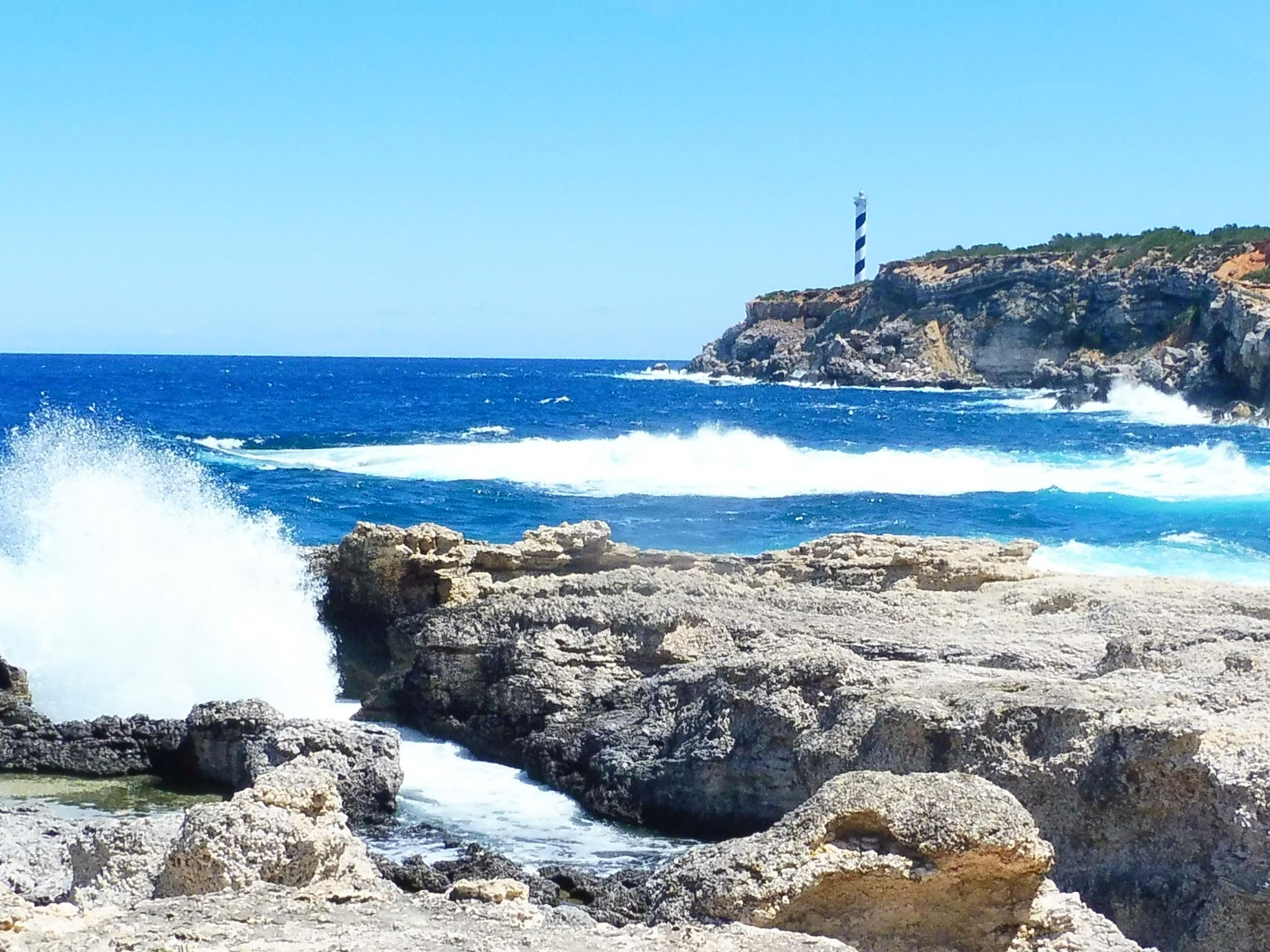 A la part més llunyana s’hi troba el bonic far de Portinatx. Visitar aquest indret, sempre és agradable però si hi ha temporal de mar, resulta sublim.