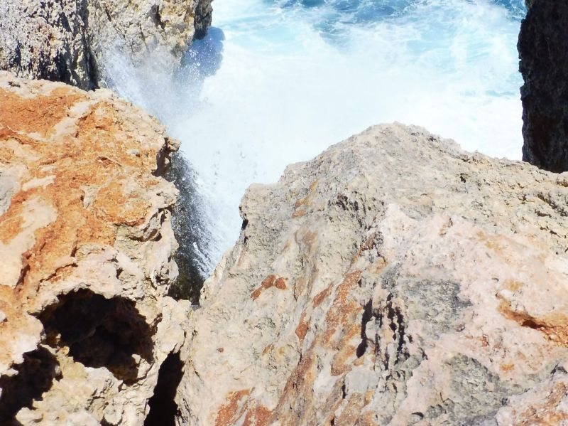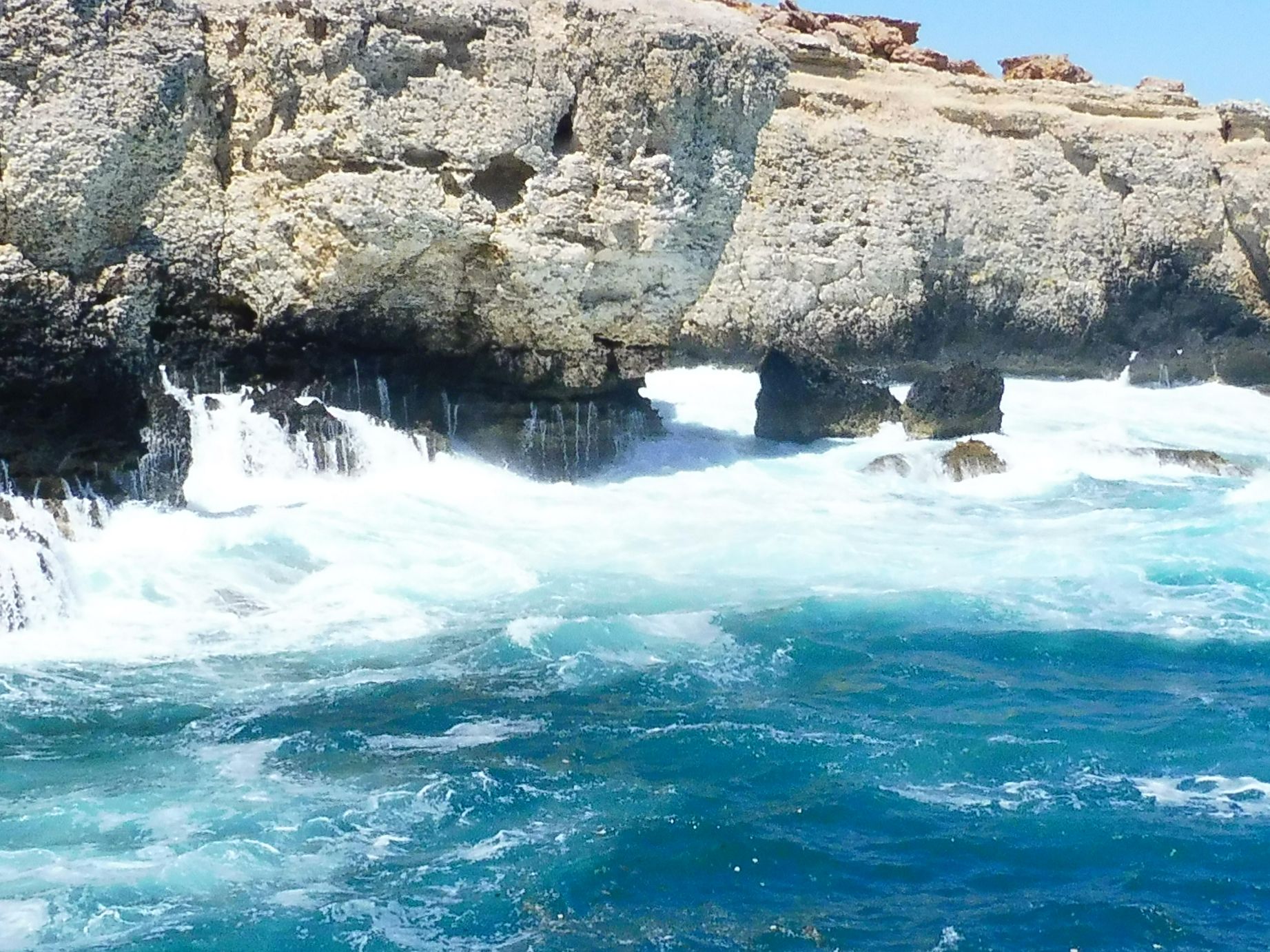 Tot i que les imatges, ni de bon tros, donen fe de la mageficència de l’espectacle, cal dir que era imponent. L’aigua s’estavellava contra les parets i les roques aixecant sortidors d’escuma blanca tot i fent un sorroll eixordador. Com que el cel era d’un blau, nét i intens i l’aigua també, la blancor d’aquesta escuma hi feia un contrast molt bell.
