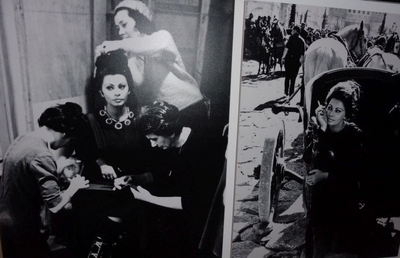 Aquesta fotografia de la dreta, on es veu Sofia Loren en un moment de descans, fumant asseguda a un carro, és la que han posat a la portada del fulletó informatiu que es dóna al públic abans de visitar l’exposició.