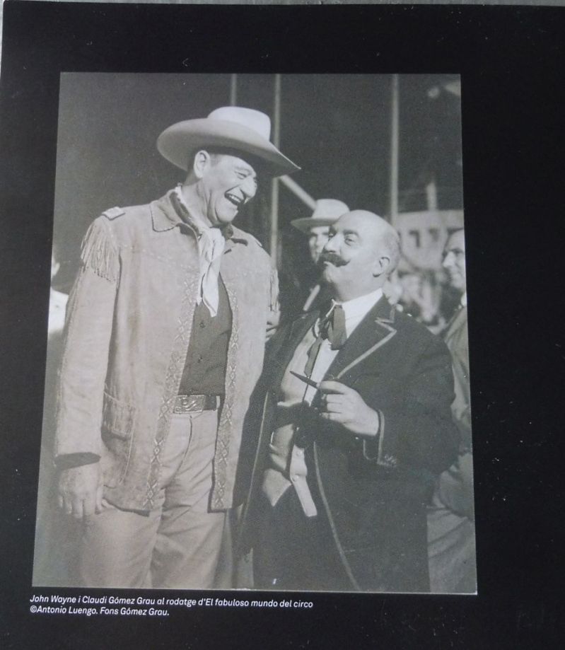 A la contraportada, amb la informació sobre l’exposició, s’hi veu el Claudi, que pel que sembla devia fer un petit paper en el film “El fabuloso mundo del circo” acompanyat del seu protagonista, l’actor americà John Wayne.