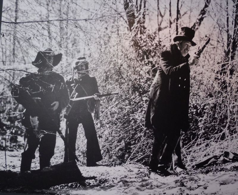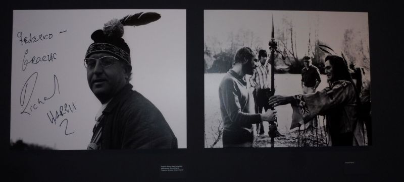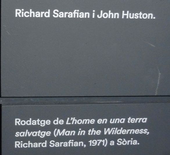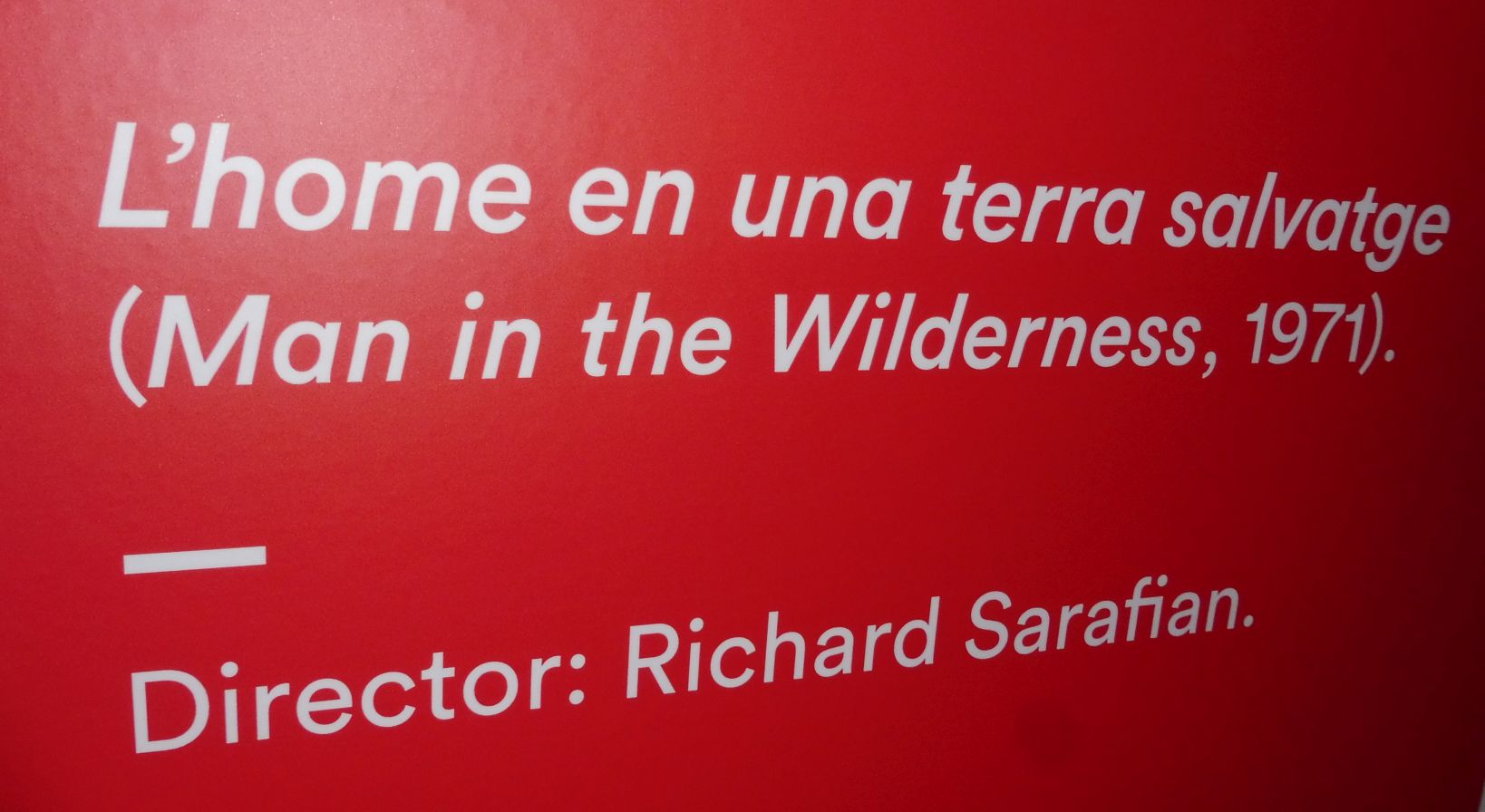 Seguim fent el recorregut per l’exposició. recordeu que totes les fotografies són en blanc i negre. El color ve donat per uns plafons informatius de fons vermell i pels cartells de les pel·lícules.