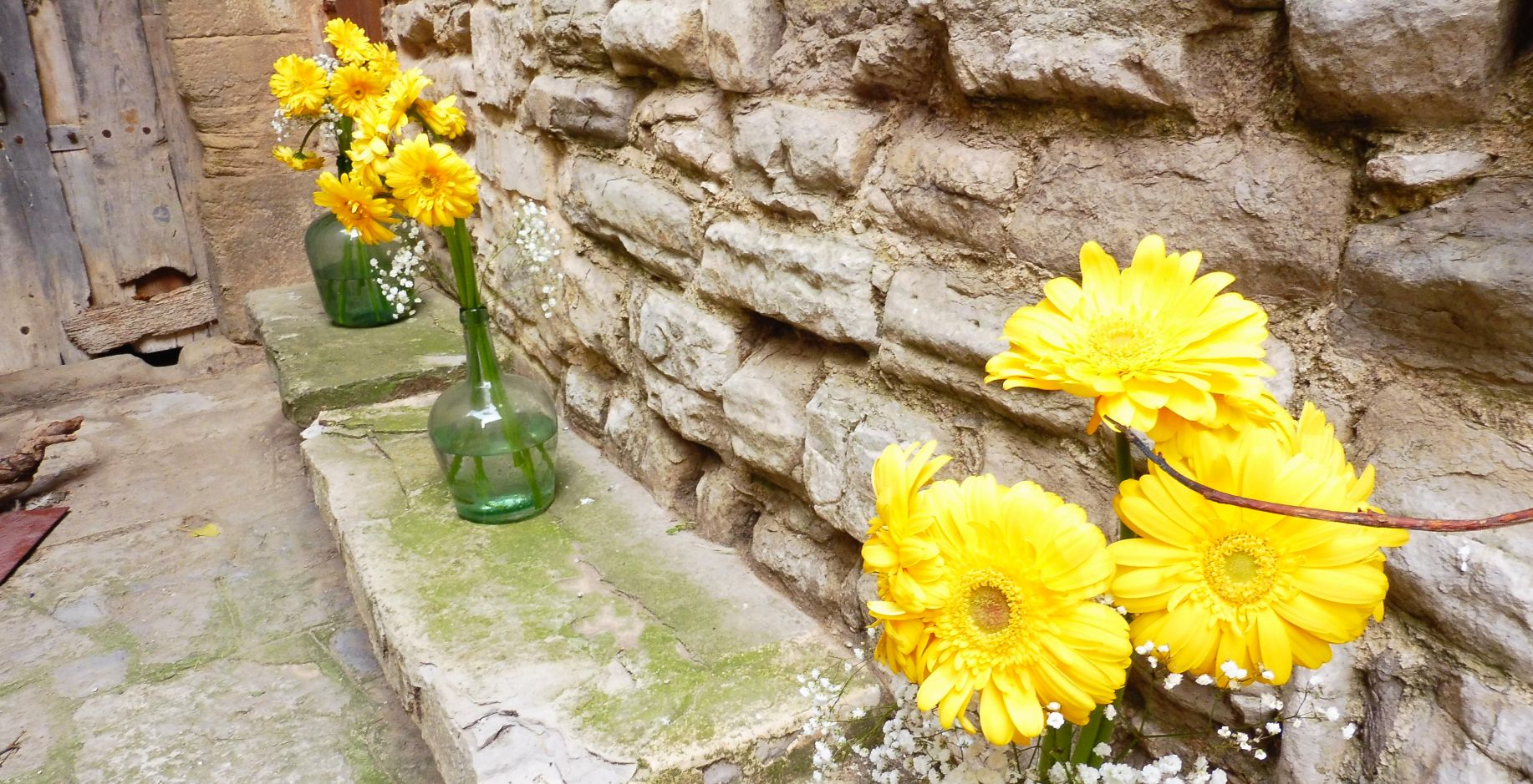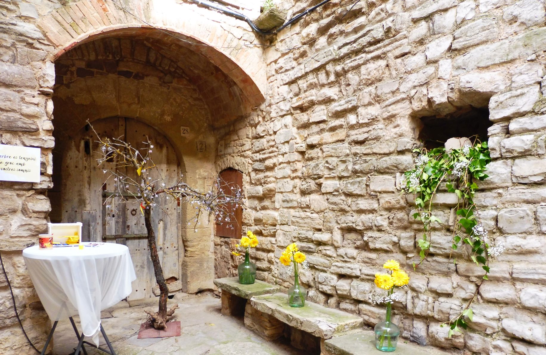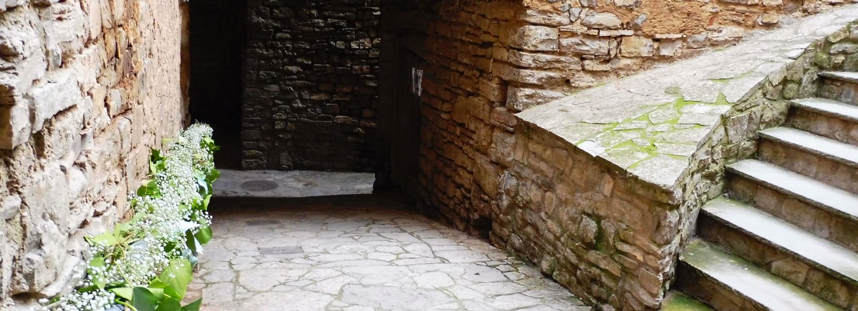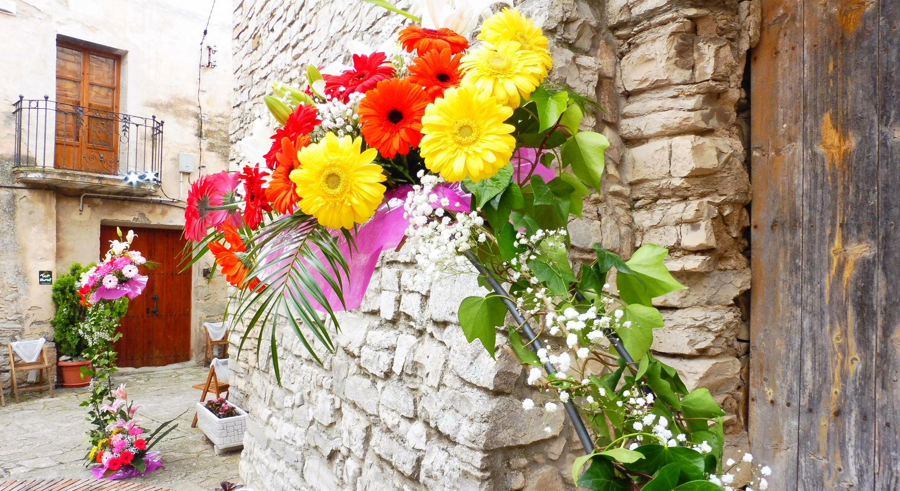 Baranes folrades d’heura i pomets de flors blanques destacaven damunt la pedra del conjunt històric.