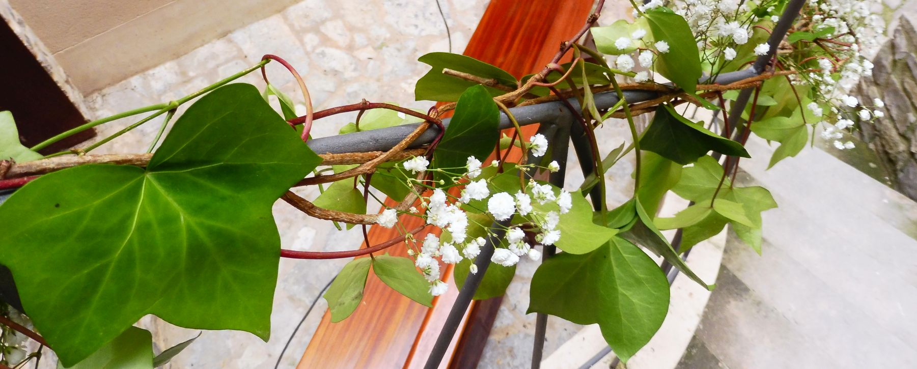 Robes sedoses, heura i flors decoraven amb gràcia diferents espais, en aquest cas oberts al paisatge segarrenc.