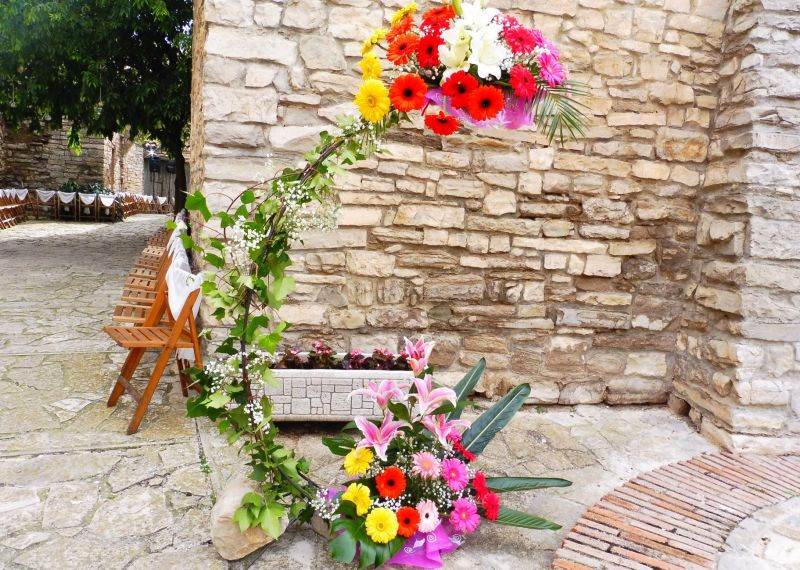 En aquesta part, que correspon a la plaça de Montfalcó i , en la que les models s’hi aplegaven per saludar en grup, estava decorada amb unes composicions florals molt acolorides.