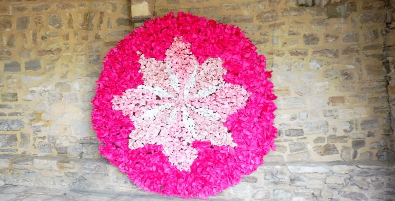 Un plafó decotatiu fet amb paper donava la benvinguda a l’entrada del recinte murallat.