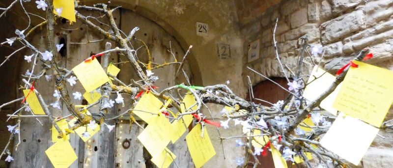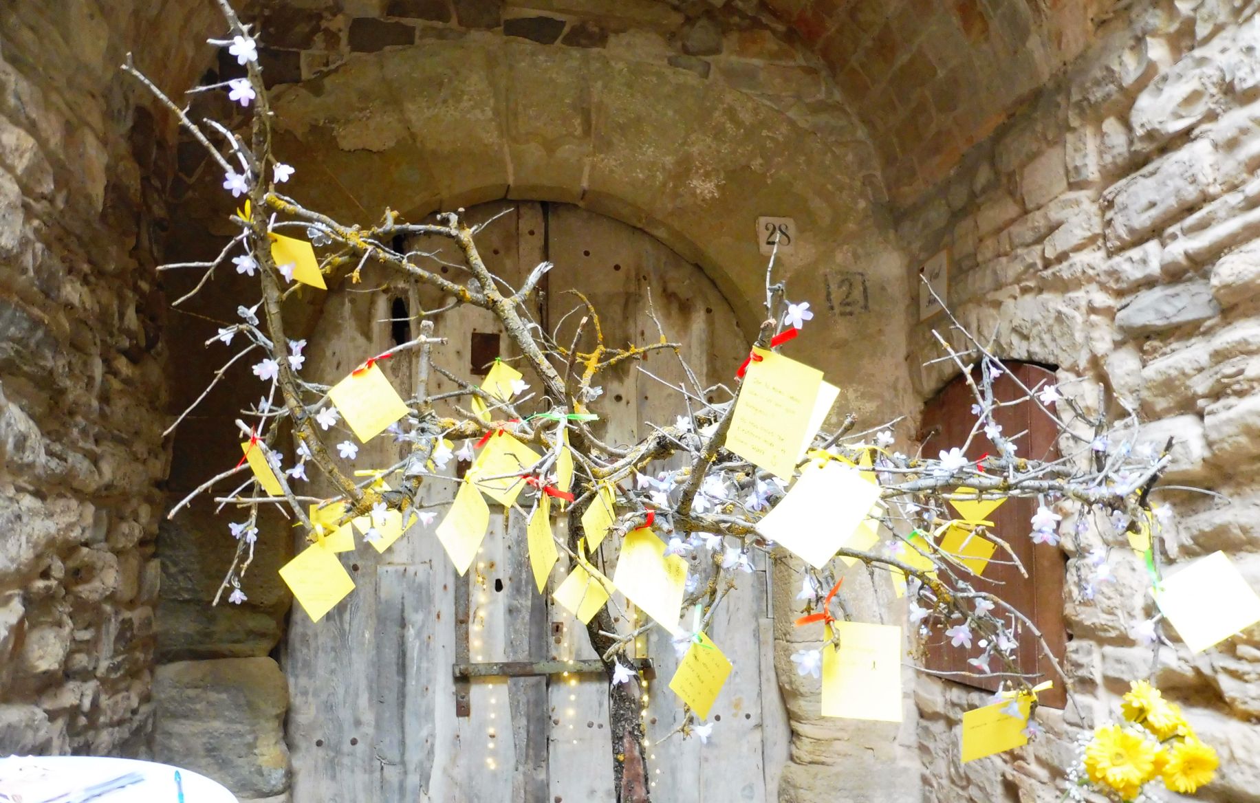 Acompanyat dels estris necessaris per anar omplint l’arbre de bons desitjos.