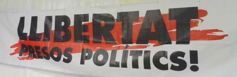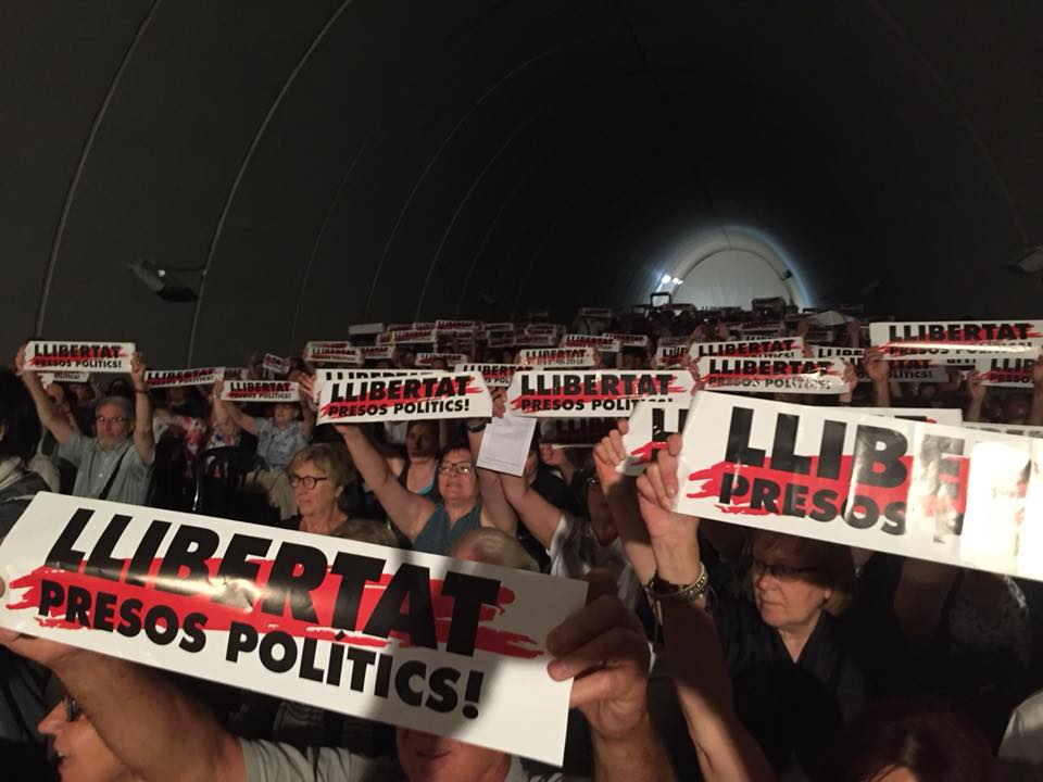 Tothom damunt el seient tenia un rètol demanant la llibertat dels presos polítics. Aquest va ser el moment d’agafar-lo i mostrar-lo com a rebuig dels seu empresonament i exili per tal de revindicar una justícia que des de fa tant temps els hi està sent negada.