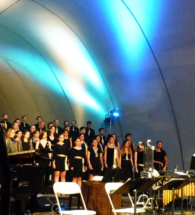En acabar l’actuació de Guinovart en solitari, els components de la Coral Ginesta de Cervera i del Pax Cor de Cambra de Sabadell es van posicionar a l’escenari per tal d’encetar el concert. Gemma Gusi, membre de la Coral Ginesta, adreçà unes paraules al públic fent esment d’aquest desè aniversari, donant les gràcies a tots i totes els que l’han fet possible i remarcant que, en aquesta celebració, estrenaven vestuari.