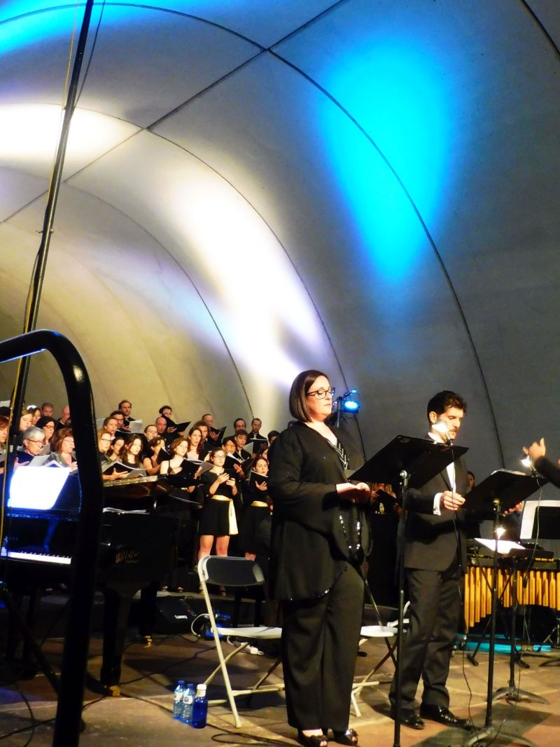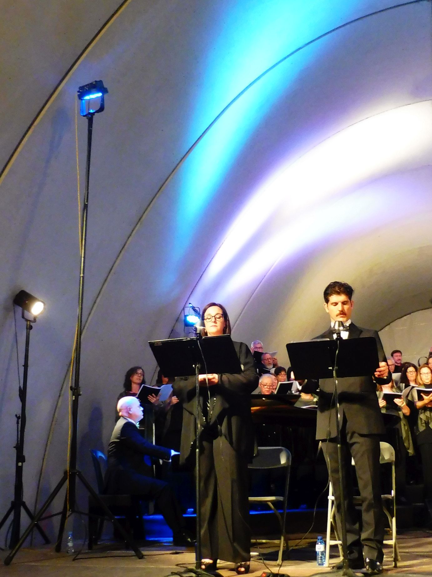 Un cop acabada la presentació entraren a escena Marta Mathéu, soprano i Toni Viñals, tenor, acompanyats de Xavier Puig director de la Coral Ginesta.