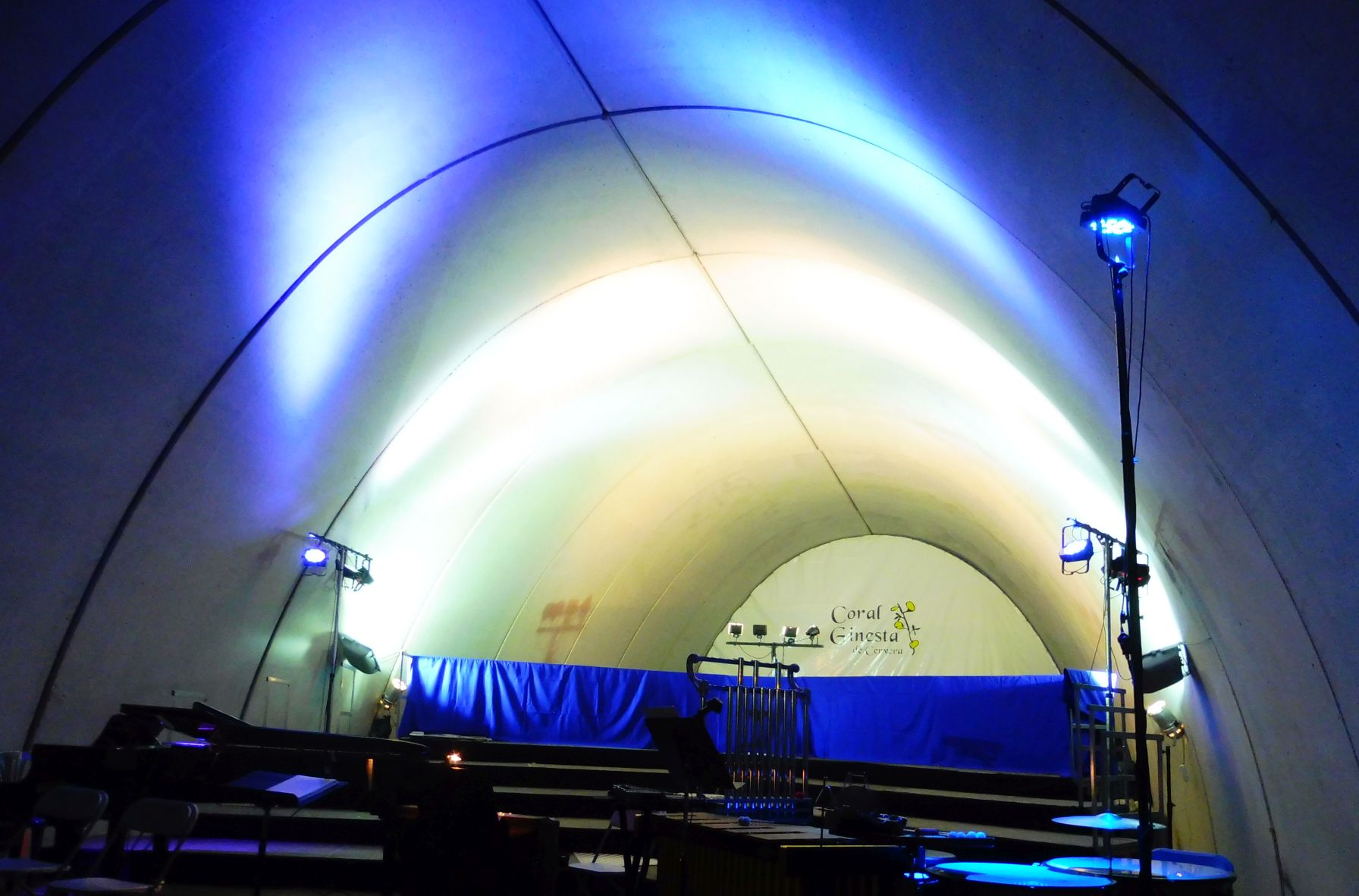 L’escenari contemplava, des del fons, la llargada d’aquest espai tan especial que es trobava ple de gent. Van ser molt pocs els seients que van quedar buits, per tant cal dir que l’èxit d’assistència va ser molt important.