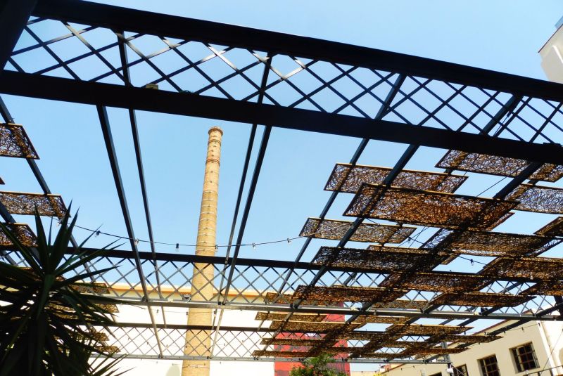 La xemeniea, visible des de molts punts, és la típica de planta troncocònica pròpia de l’arquitectura fabril de principis del segle XX.