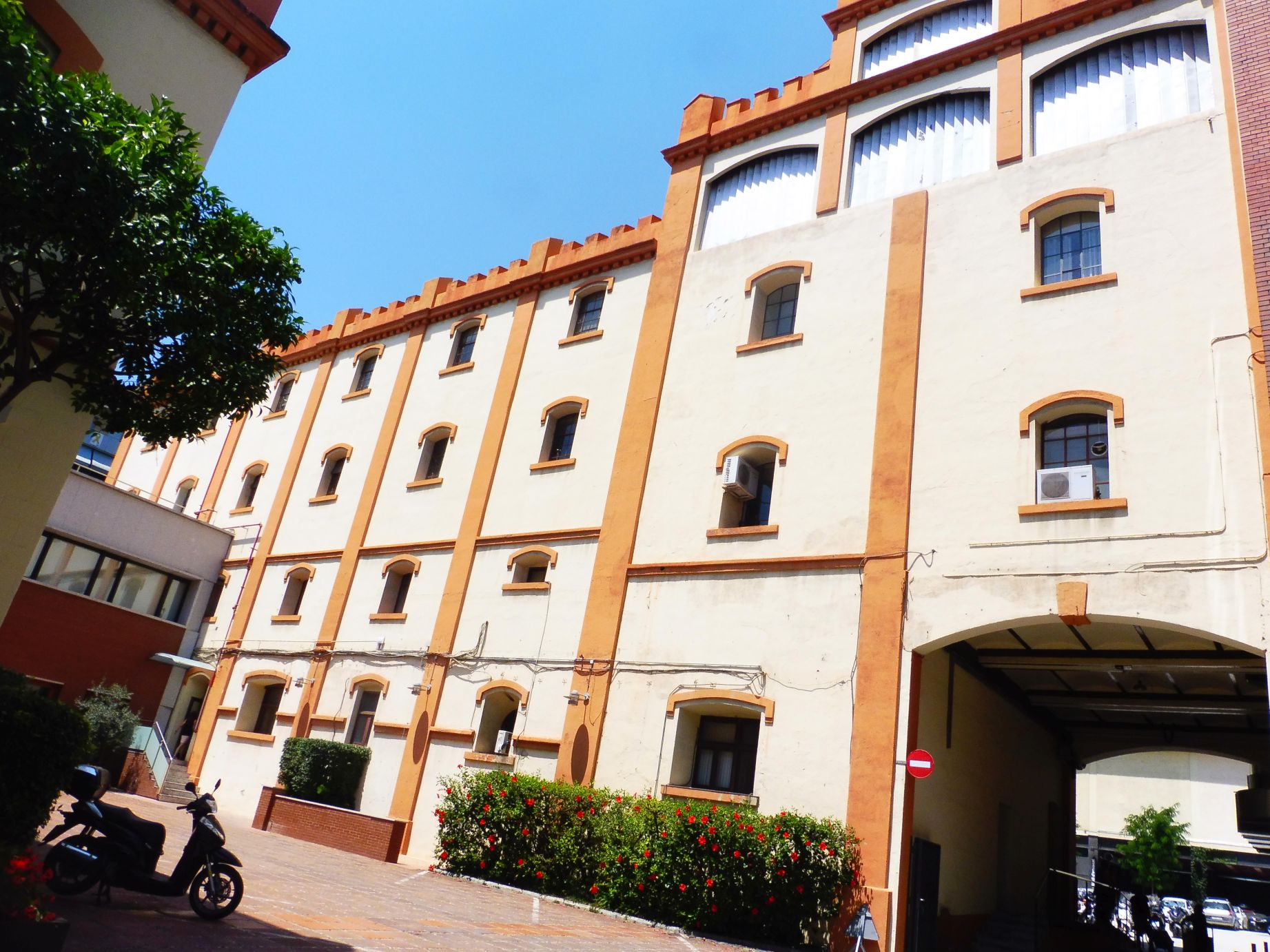 L’edifici respon a la clàssica tipologia industrial de l’època: les façanes combinen estucats i maons vistos.