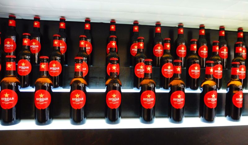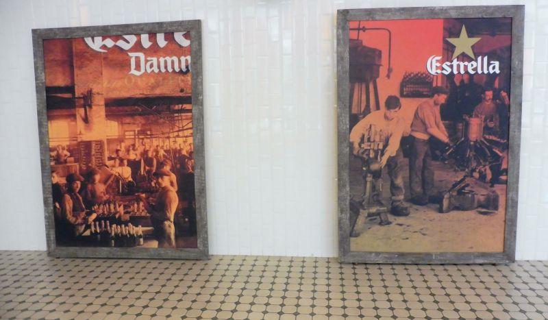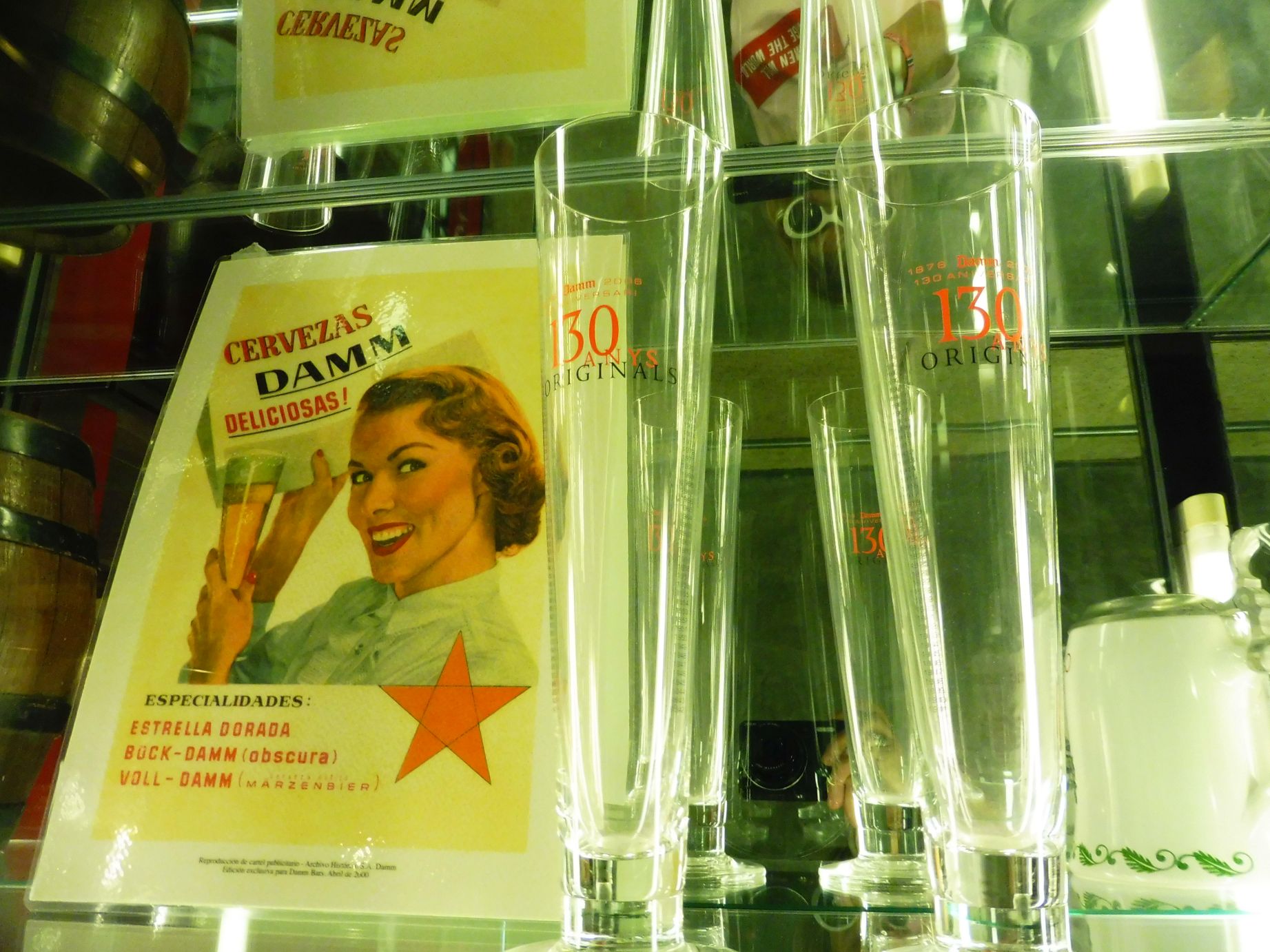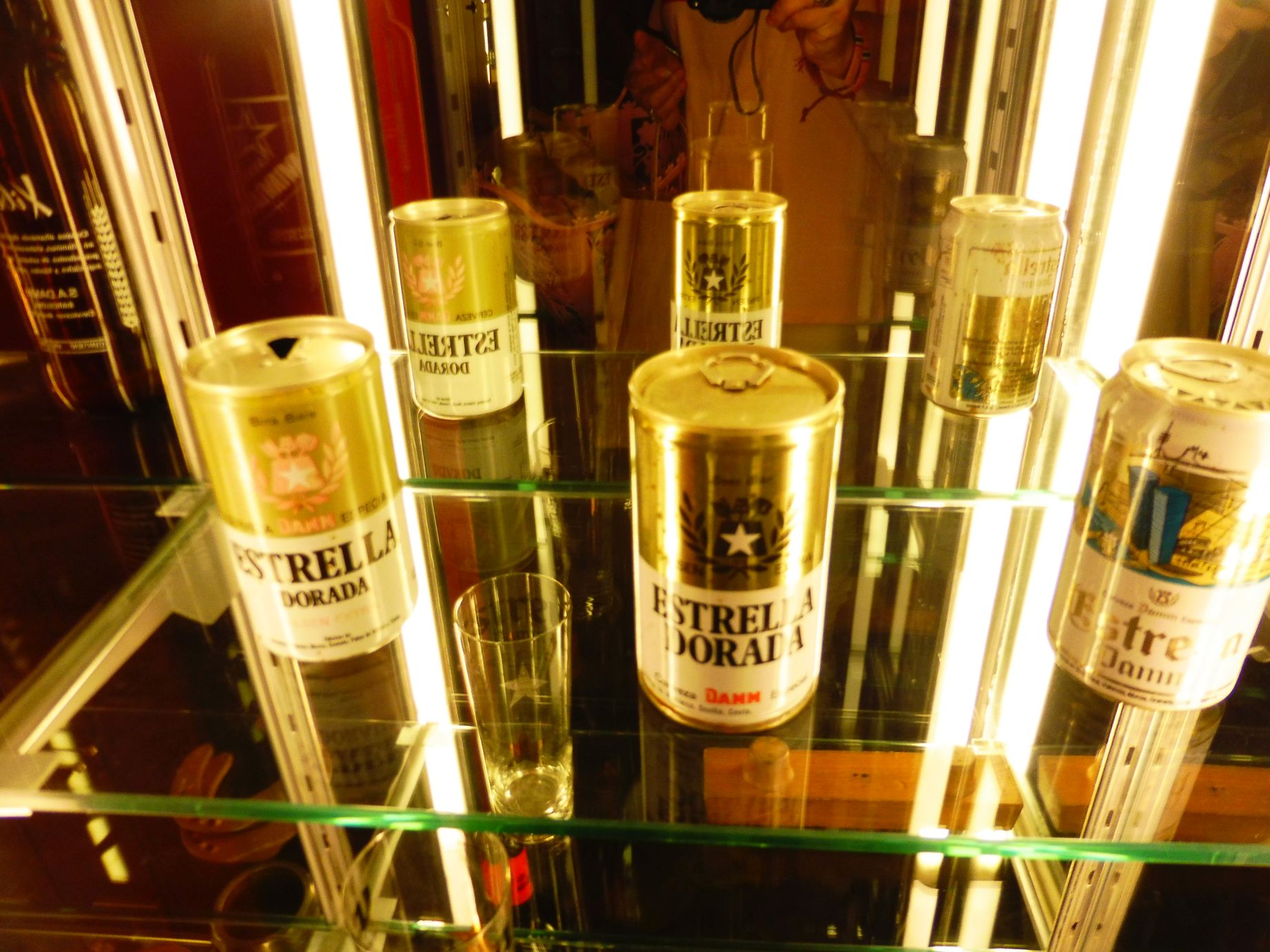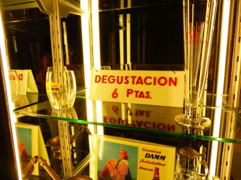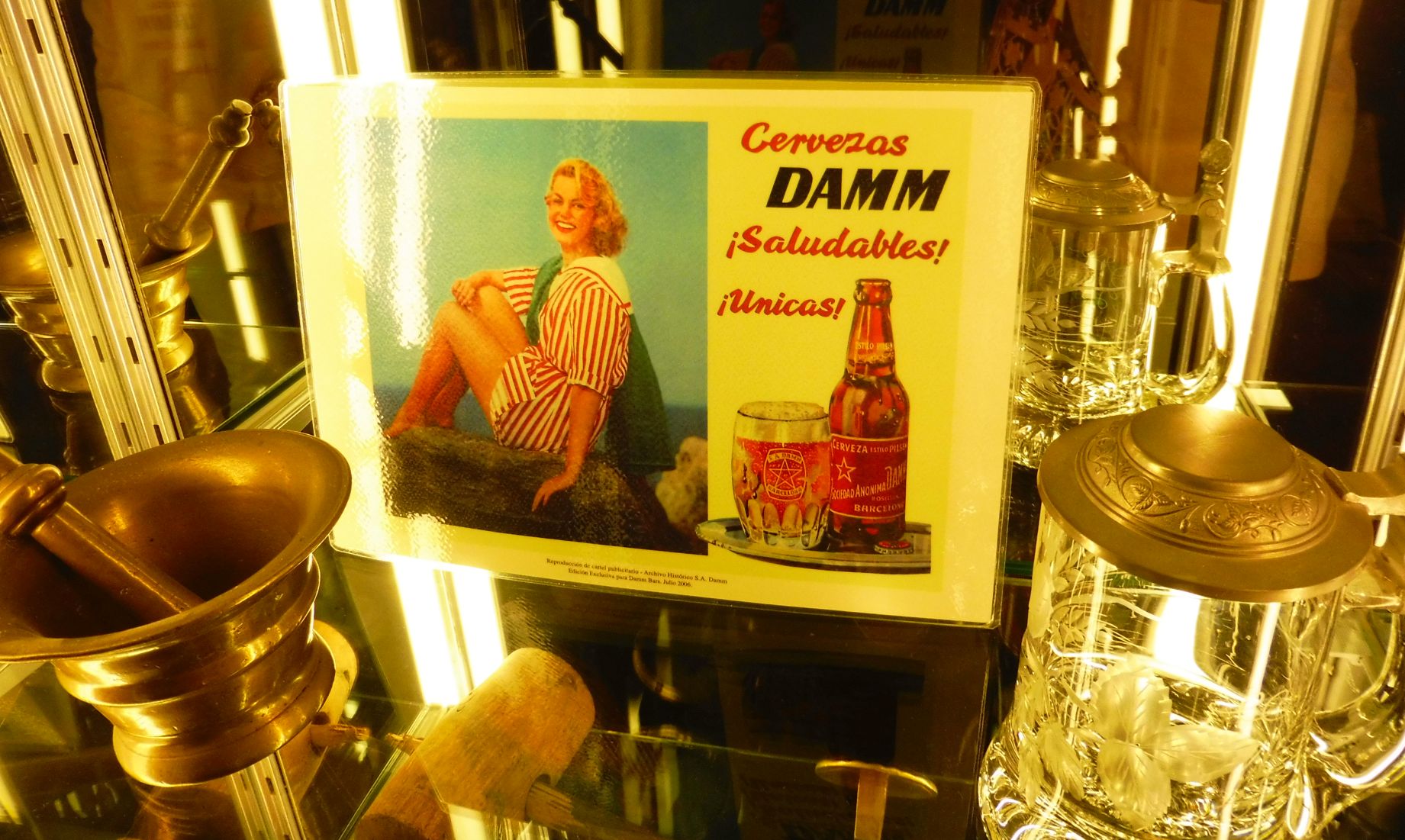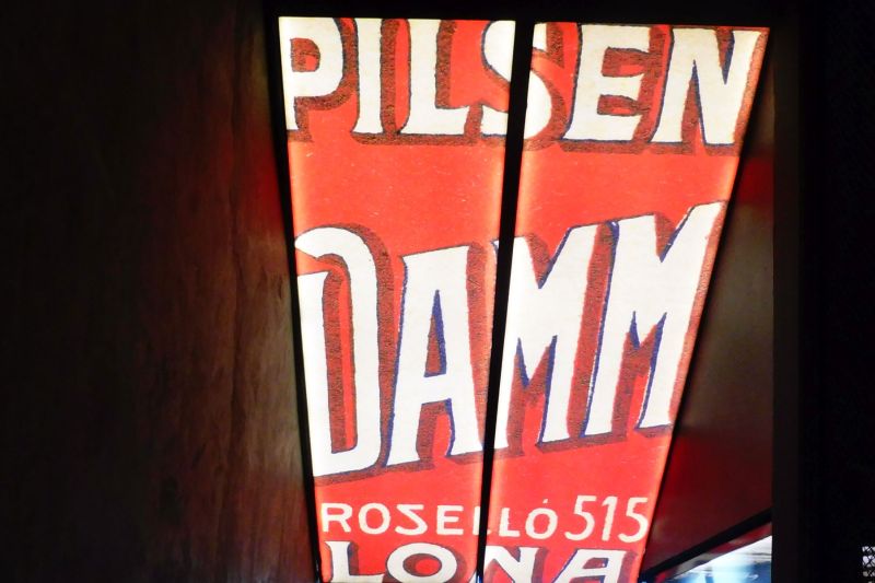 Mai havia vist una decoració tan reeixida en una zona de lavabos. Tant pel que fa als d’homes com de dones hi ha, a l’entrada, una gran quantitat de vitrines molt ben il·luminades que mostres una important col·lecció d’objectes d’altres èpoques vinculats amb la cervesa Damm