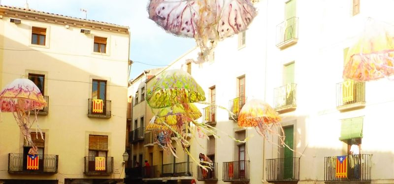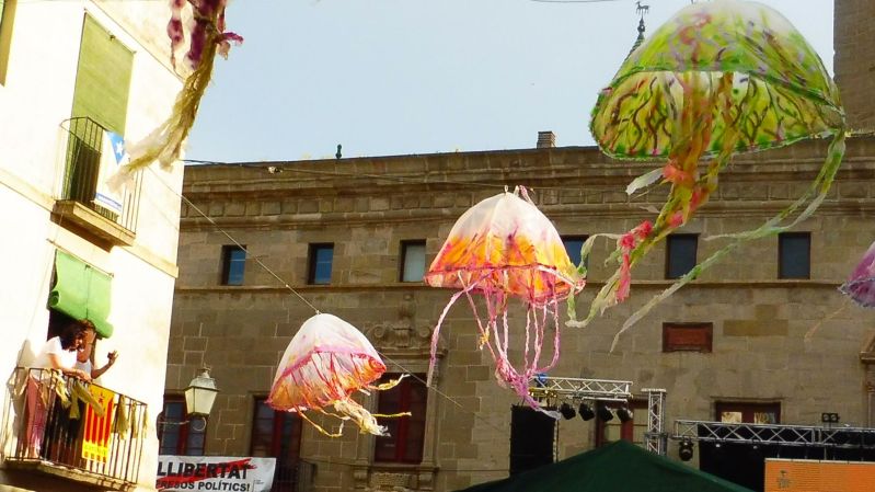 La decoració de la plaça era vistosa, acolorida i en moviment. Aquesta sípia dóna pas a un conjunt de meduses que enamoraven.