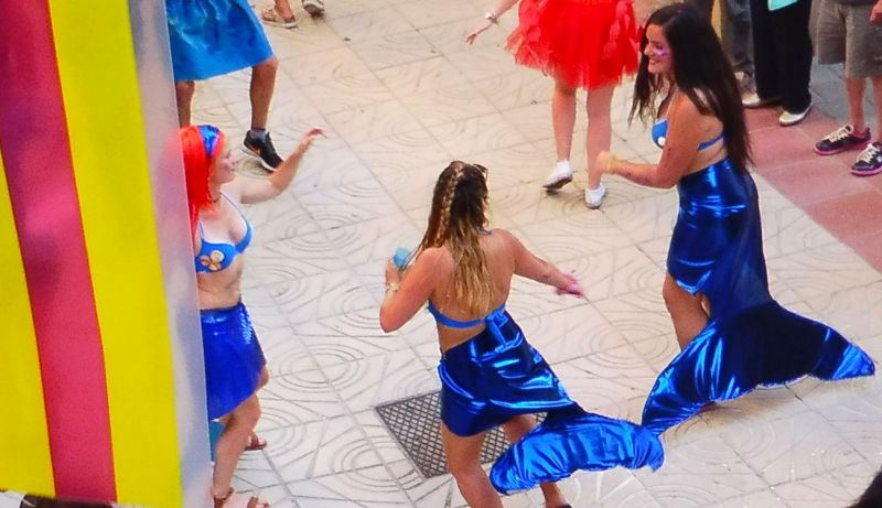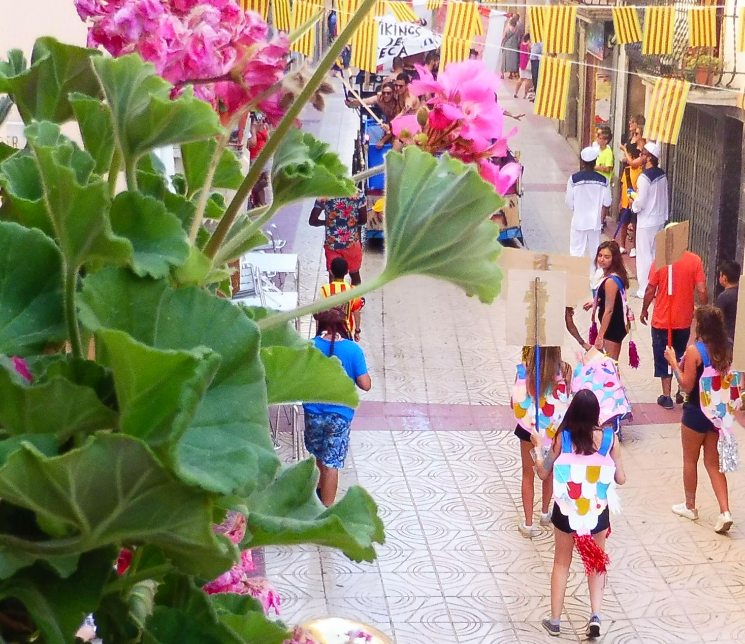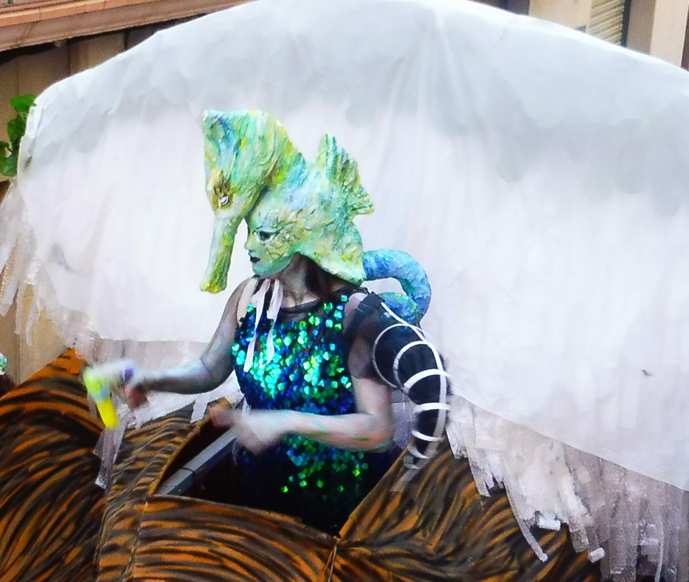 Seguim la desfilada de la cercavila en el seu pas pel carrer Combat. Unes boniques sirenes ballen amb les cues movent-se amb gràcia.