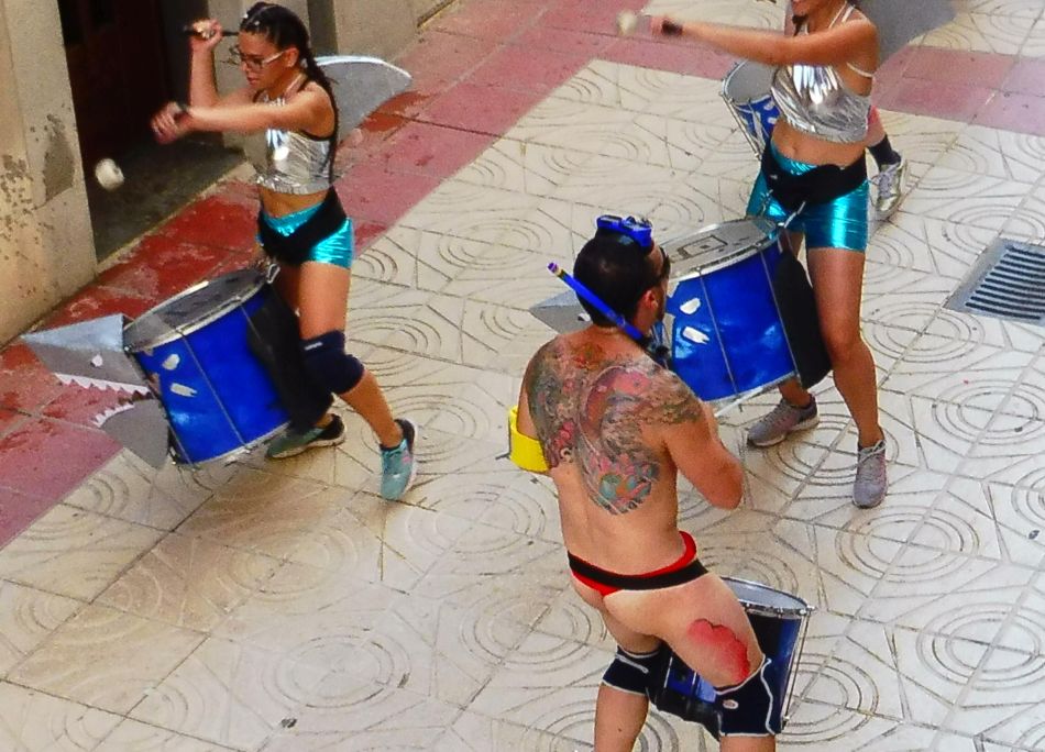 El grup “Taboo, Vilanova i la Geltrú” va sorprende per la seva bona percussió, per la customització dels tambors i pel tanga del seu capdavanter, que lluïa un supertatoo.