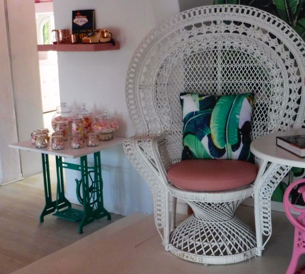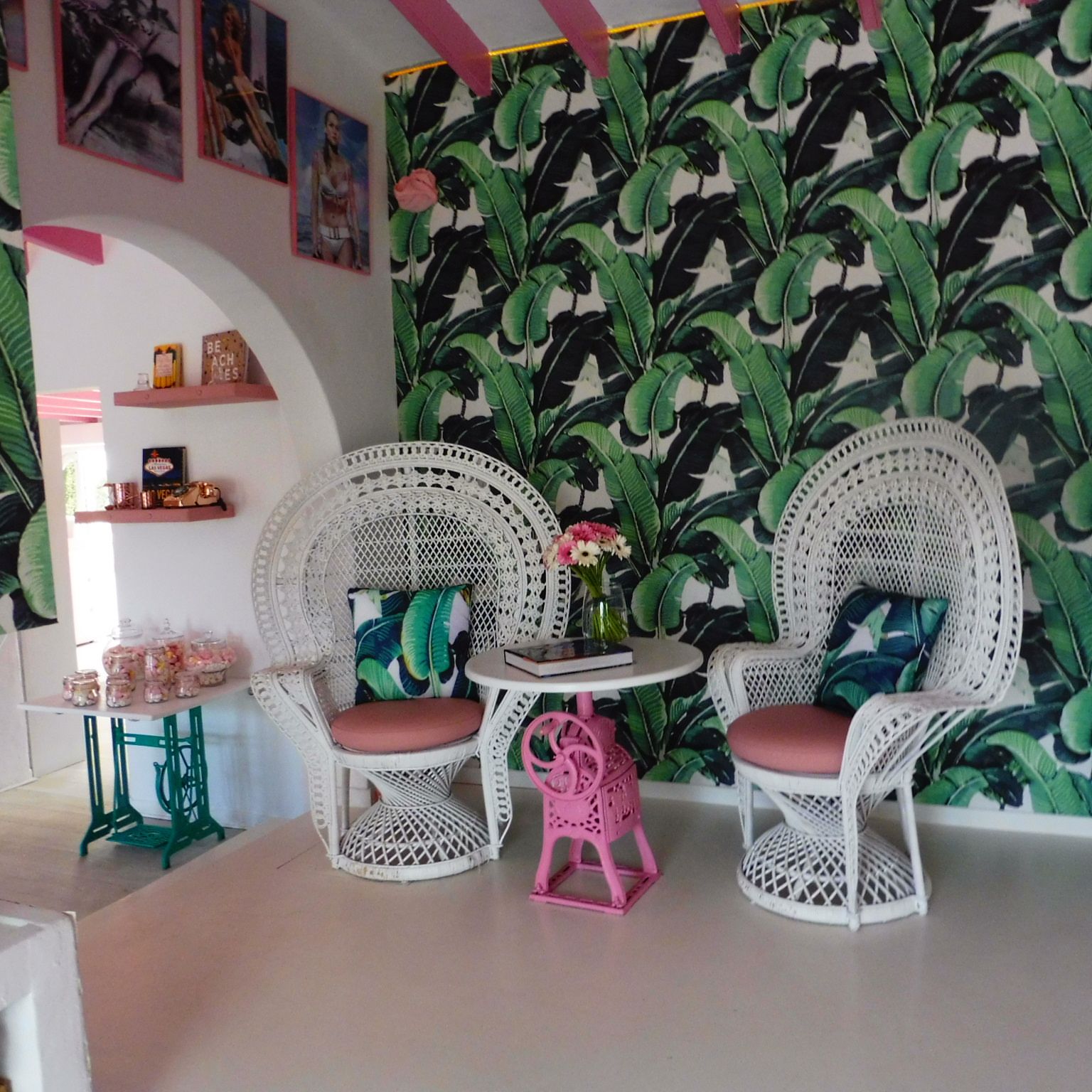 El color que s’imposa a la decoració és el rosa, que es combina amb el verd, tant a l’exterior com a l’interior, i els recursos decoratius són molt originals, sorprenents i del tot sweets.