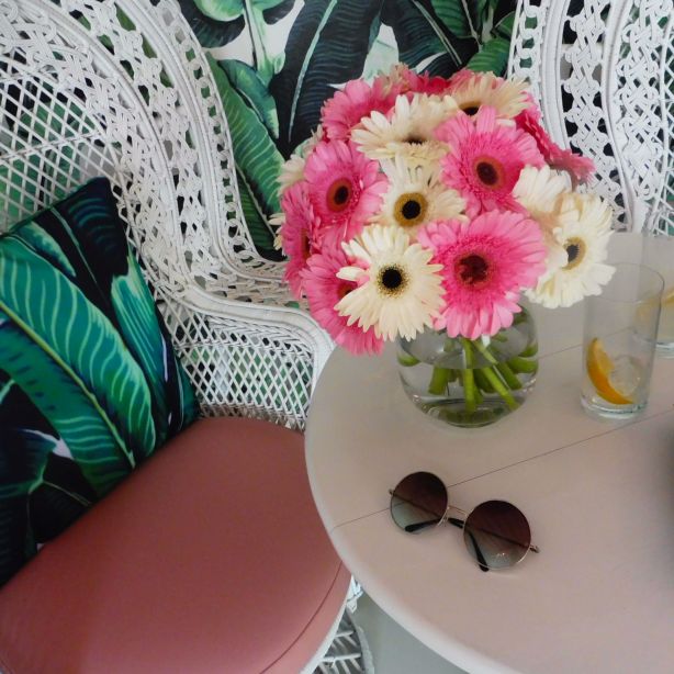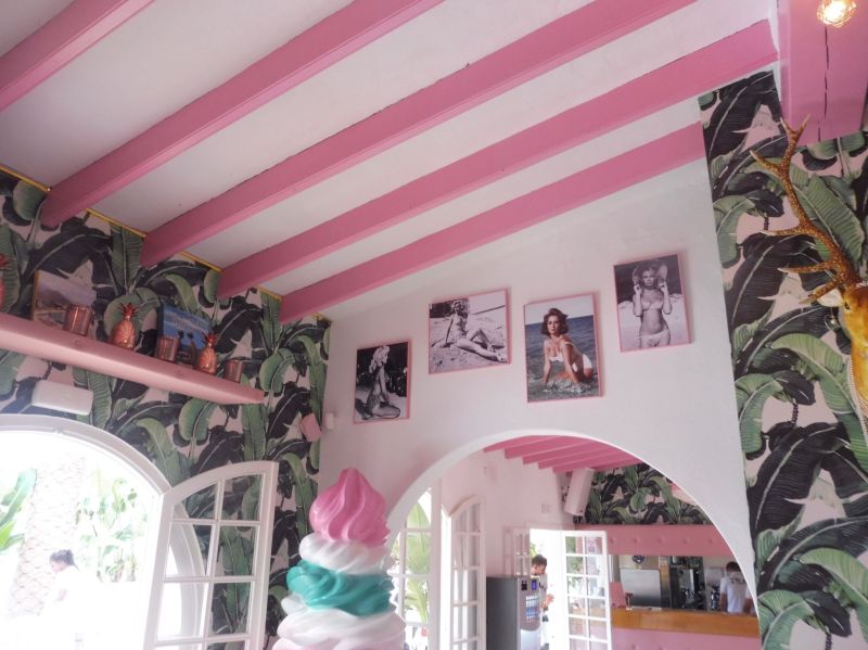 La decoració està inspirada en el legendari Beverly Hills Hotel de Los Angeles.