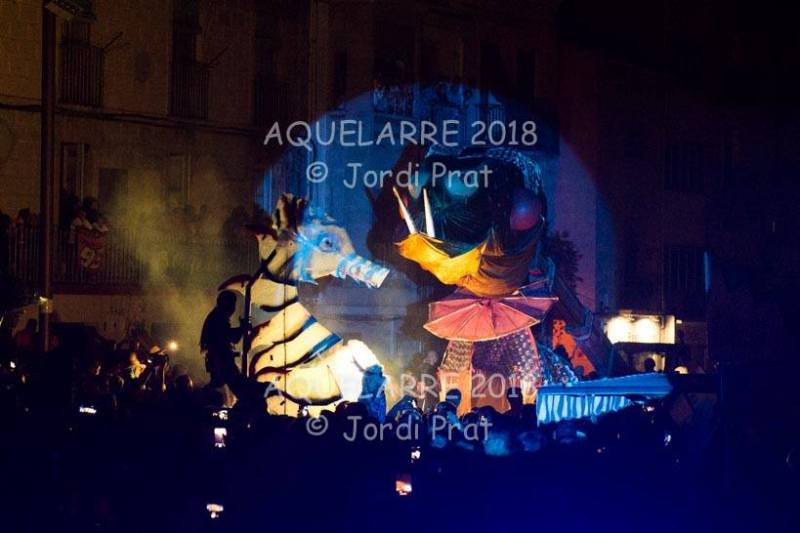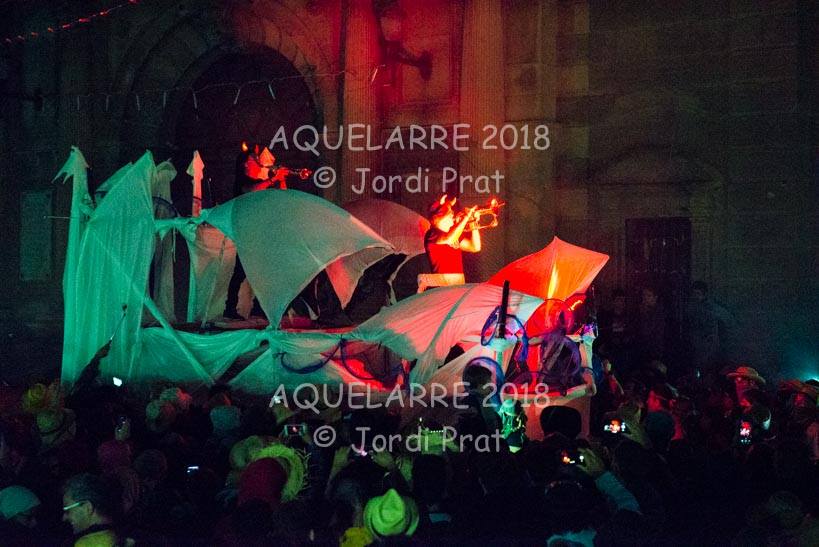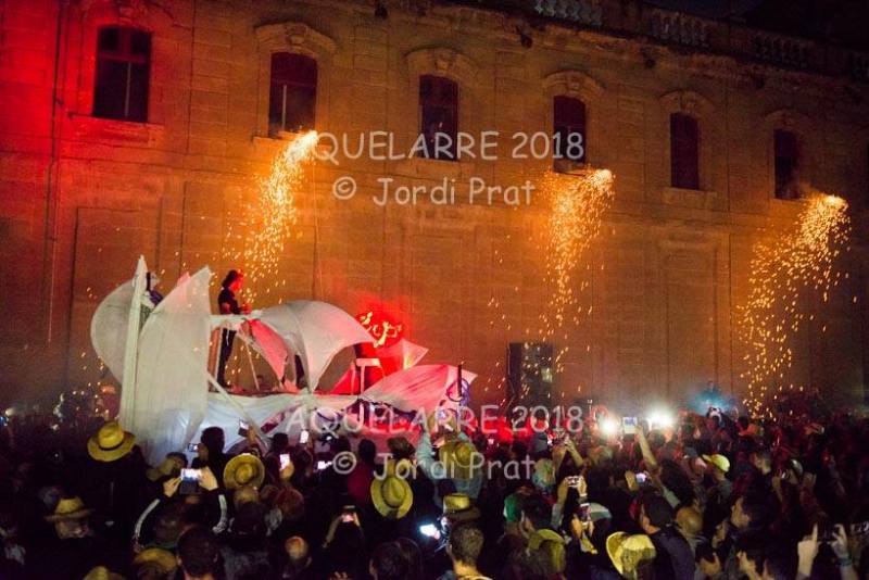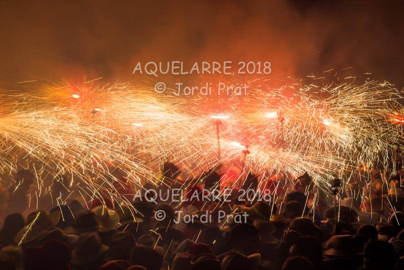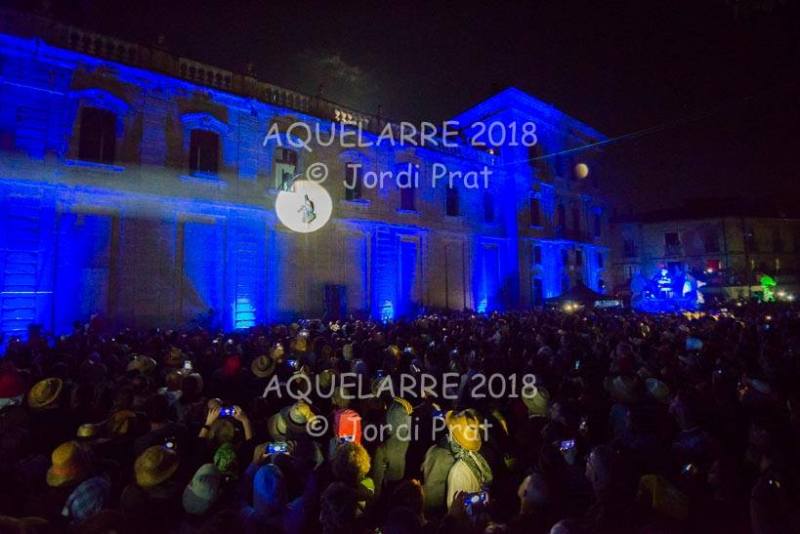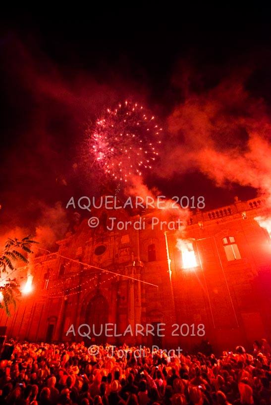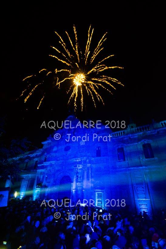 A les 11 de la nit de dissabte i, després de tres tocs de crida, és el moment que comença l’espectacle de l’Aquelarre. S’inicia a la plaça Universitat amb diferents recusos que pretenen sorprendre i captivar els milers d’espectadors que s’han aplegat allí.