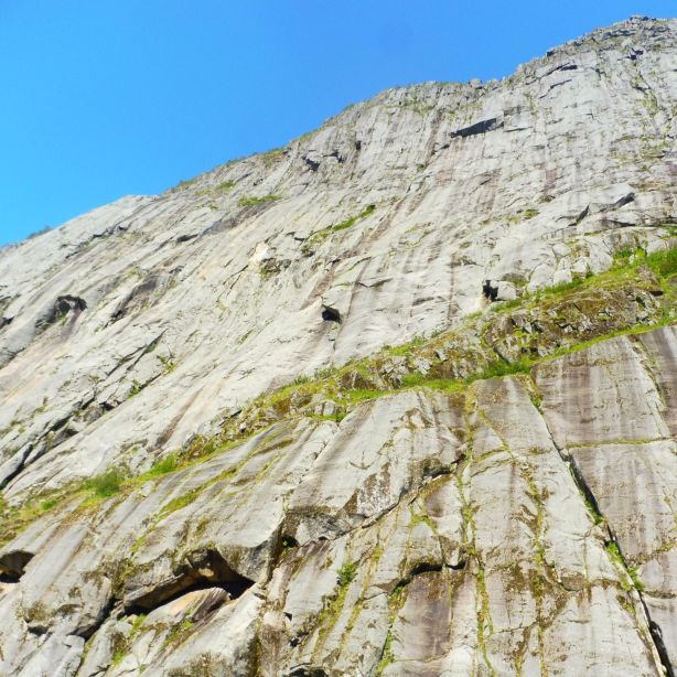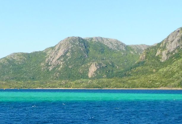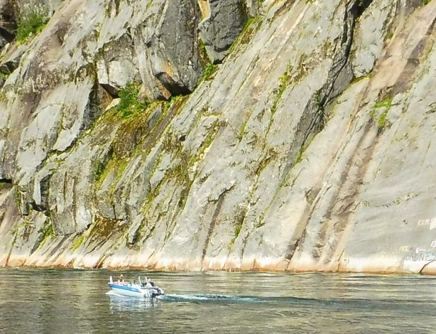 Curiós aquest tram del fiord on es veu un color d’aigua que em va recordar alguns llocs d’Eivissa, on hi ha la poseidònia que és la que dóna aquesta tonalitat. No sé en aquelles latituds a què es degut.