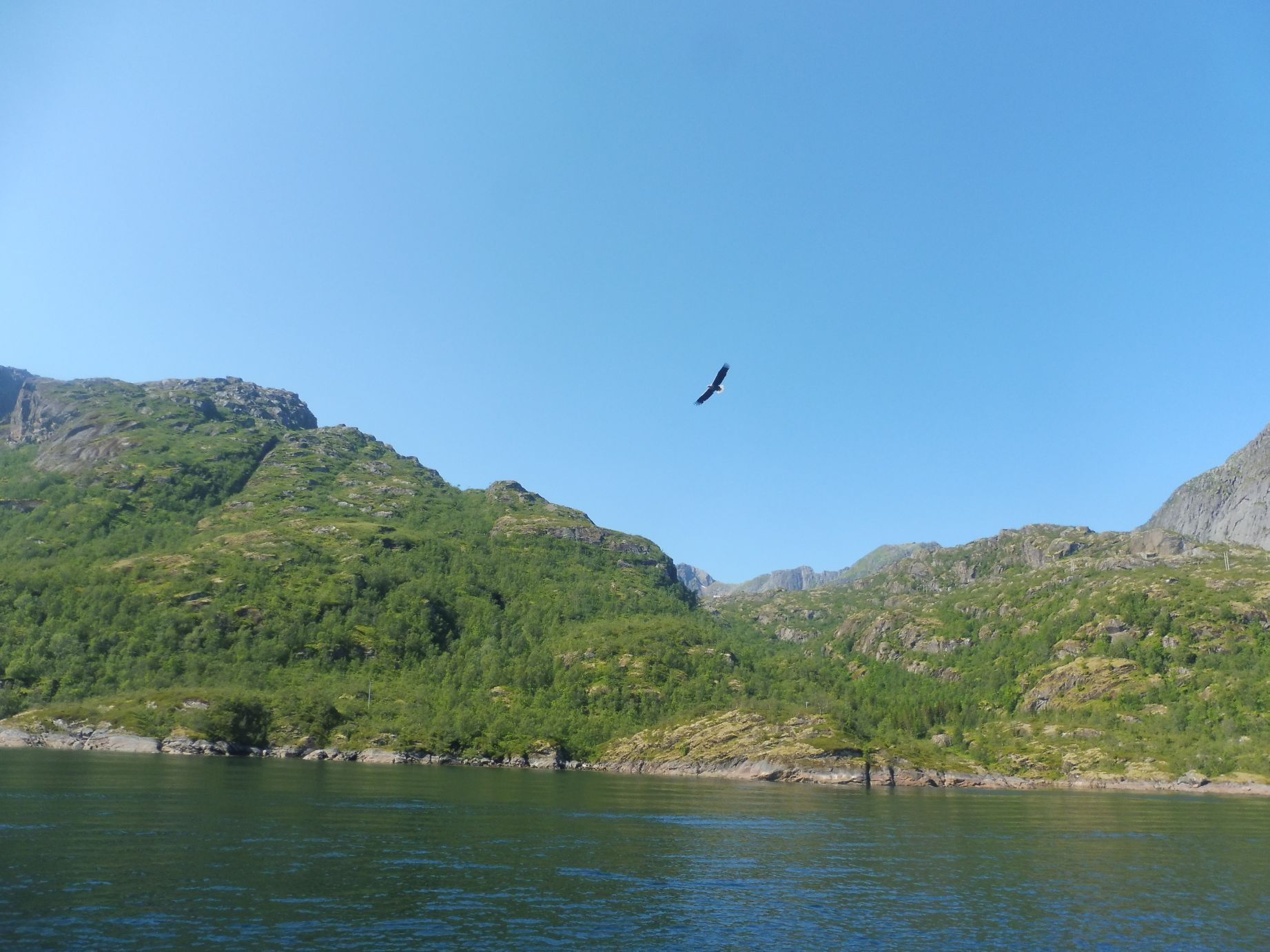 Al llençar a l’aigua restes de peix, les aus seguien el barco. Va ser molt espectacular veure com aquesta àguila planejava …