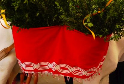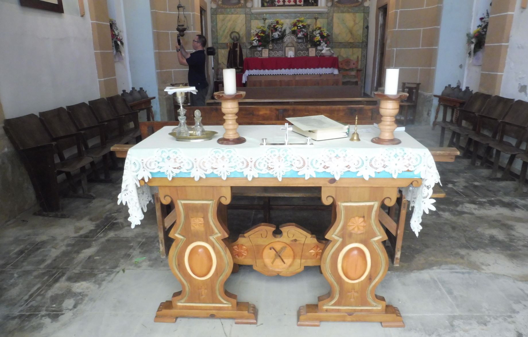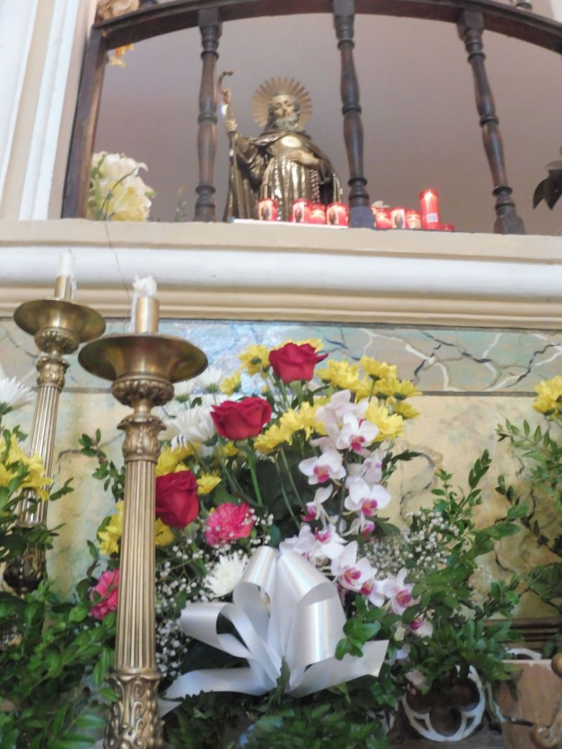 Els veïns tenen molta cura en arranjar l’església el millor possible. Flors i tapetes acullen aquesta altra imatge.