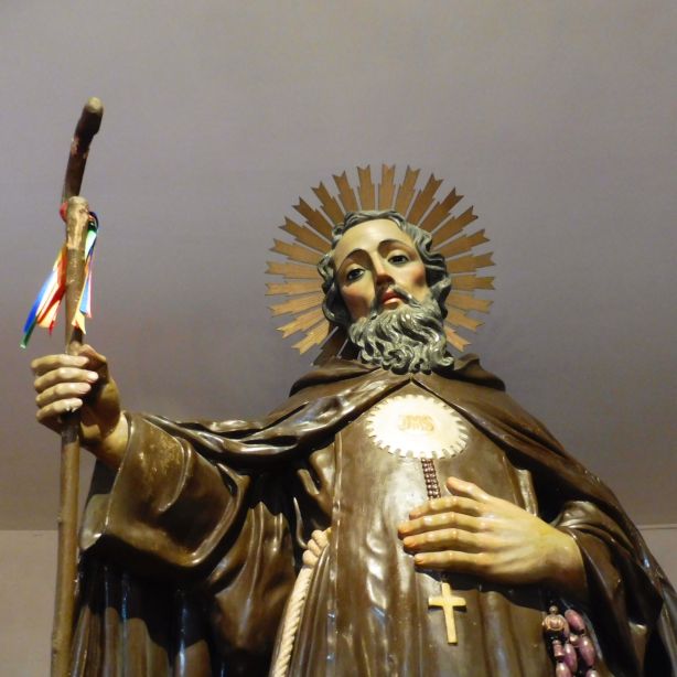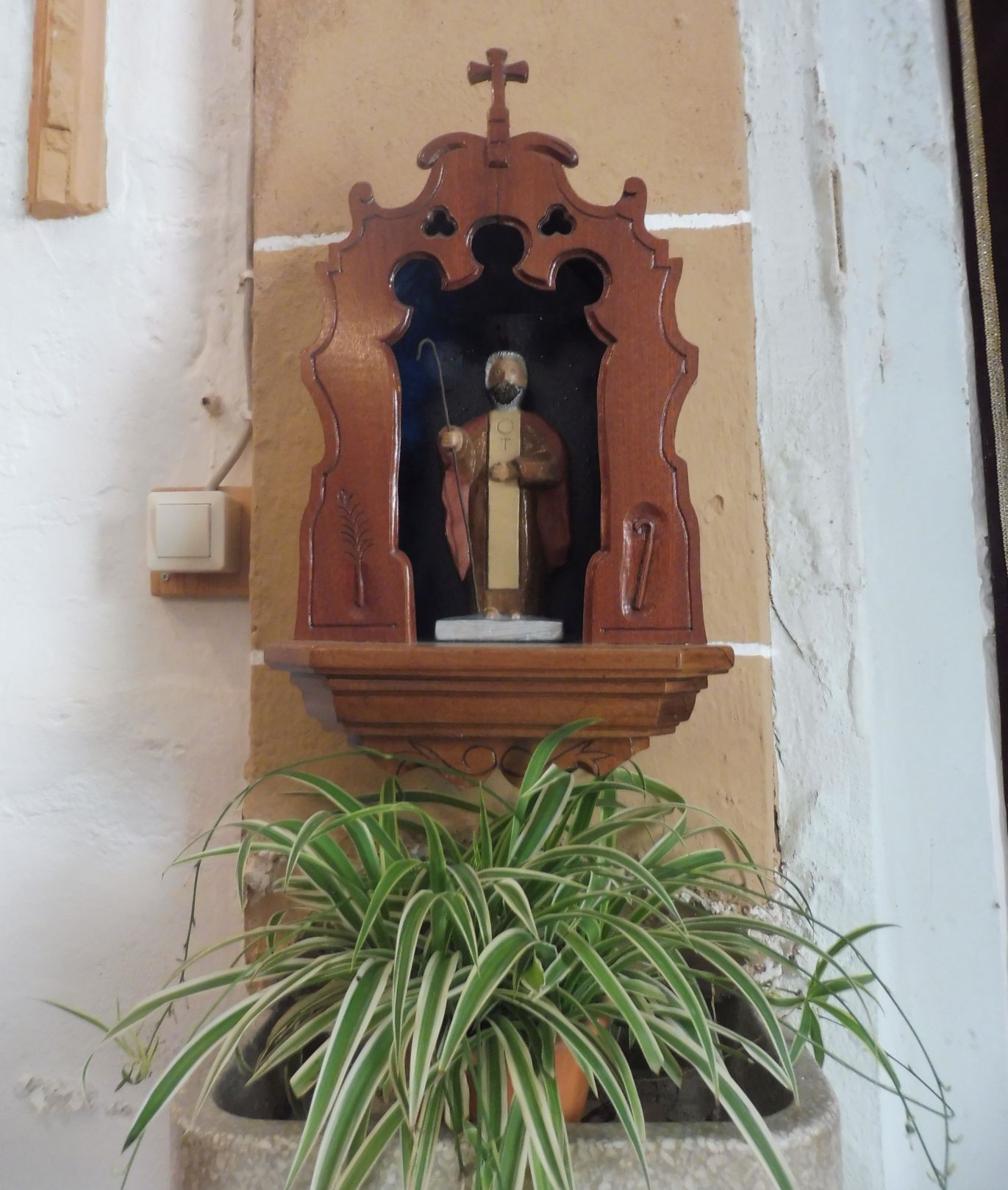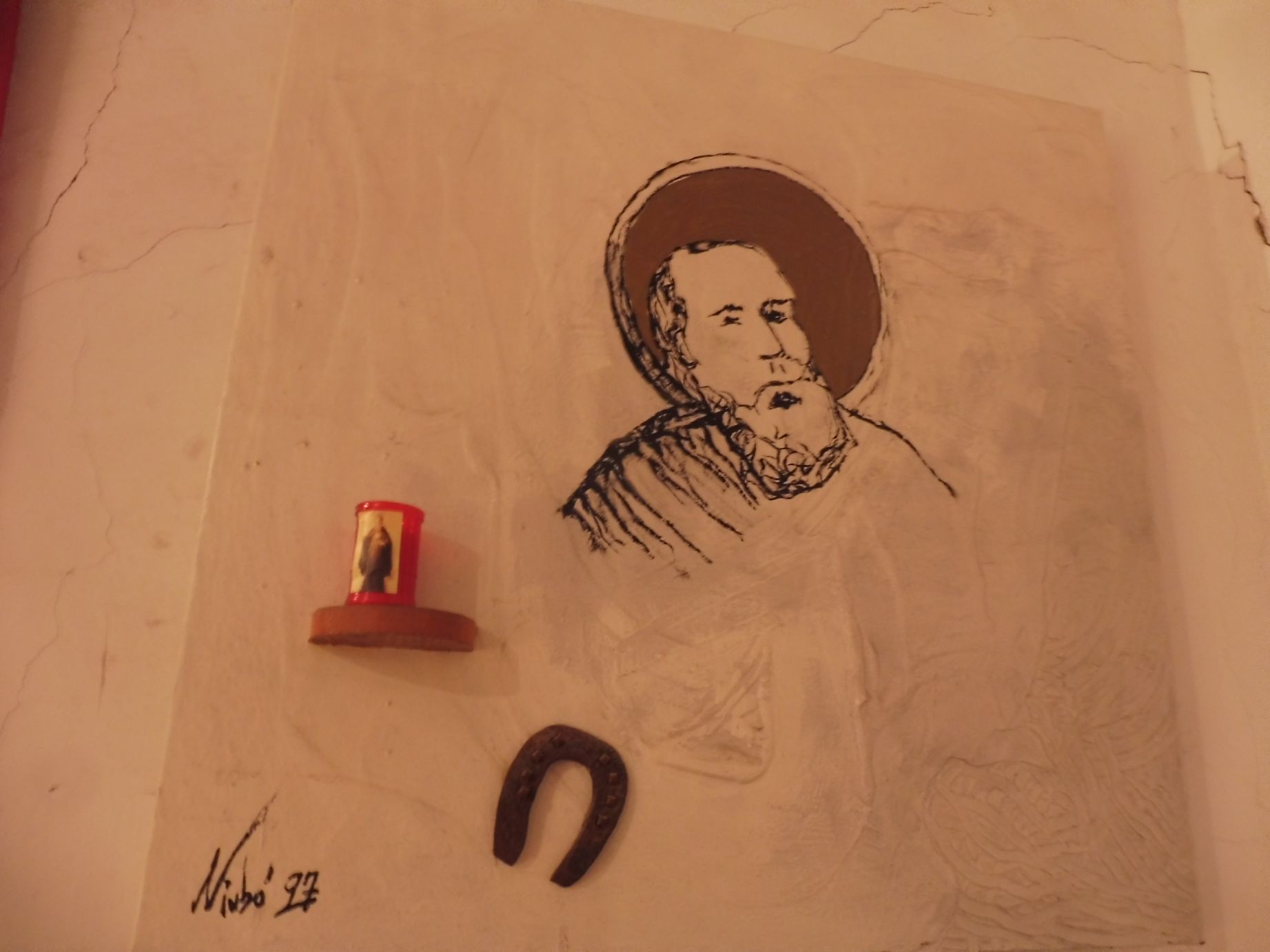 Un treball artesanal amb la figura del sant, que mostra un cert aire naïf, decora un racó.