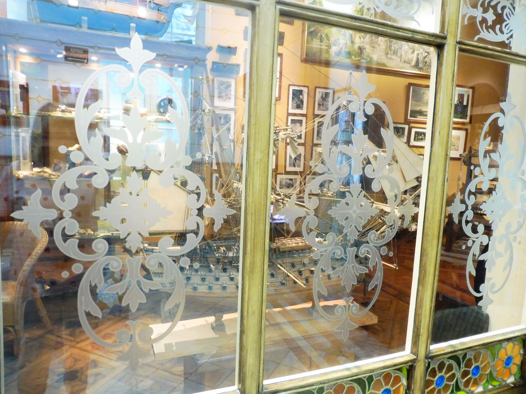 Els vidres amb dibuixos fets a l’àcid donen un caire molt elegant a la decoració.
