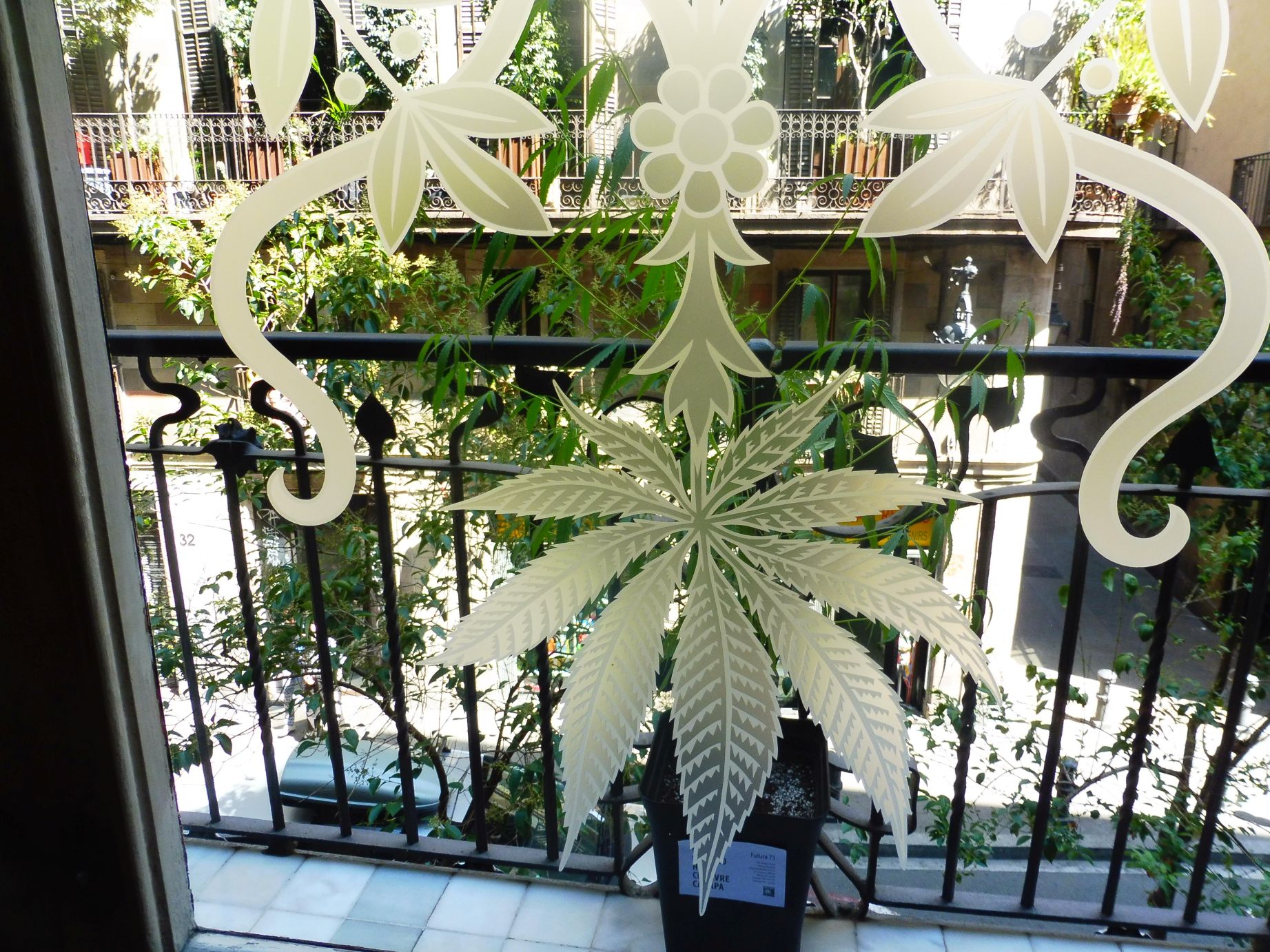 Observeu que als balcons hi ha testos amb plantes de marihuana.