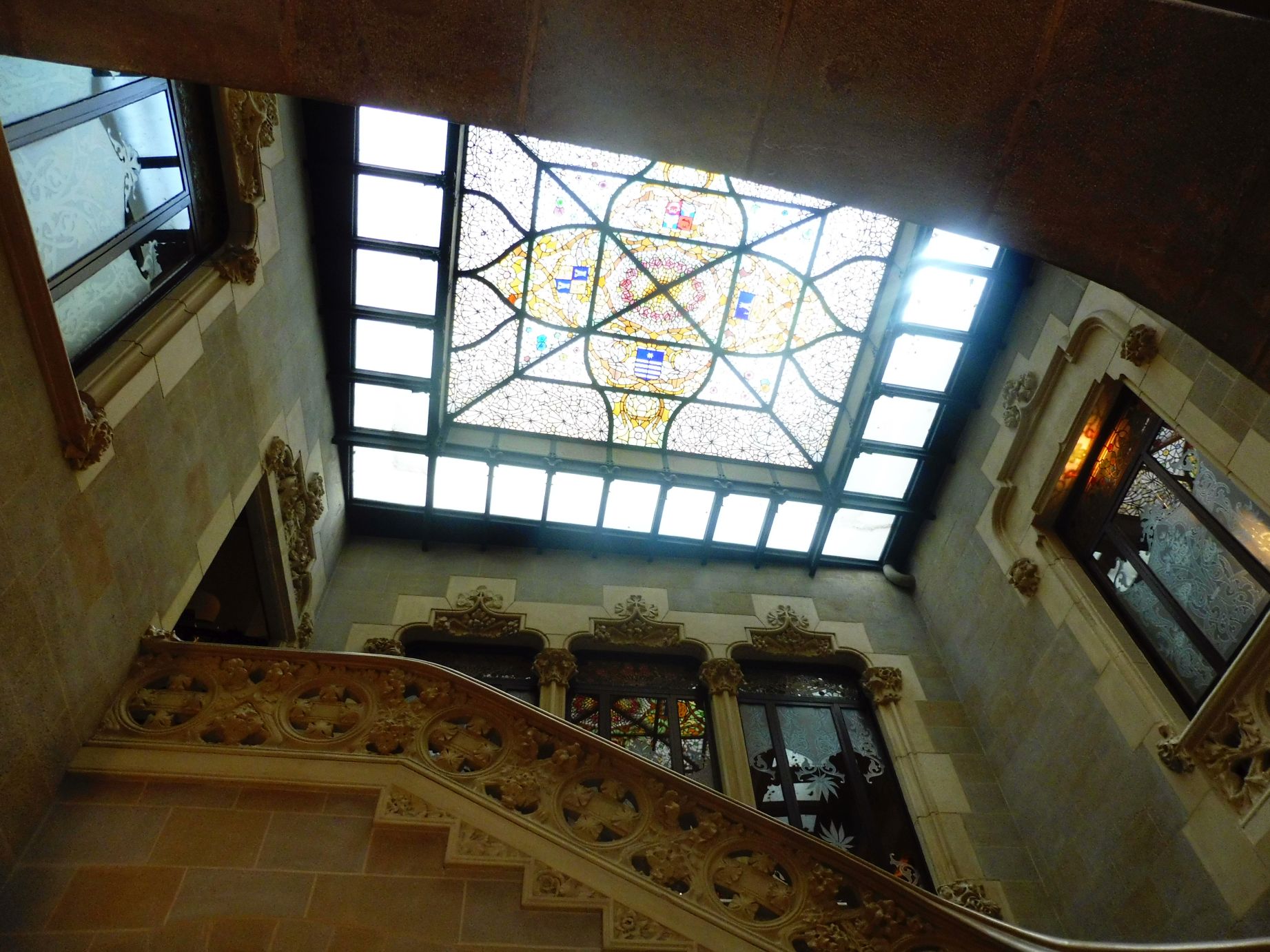 La bellíssima escala de pedra amb la magnífica claraboia moderista.
