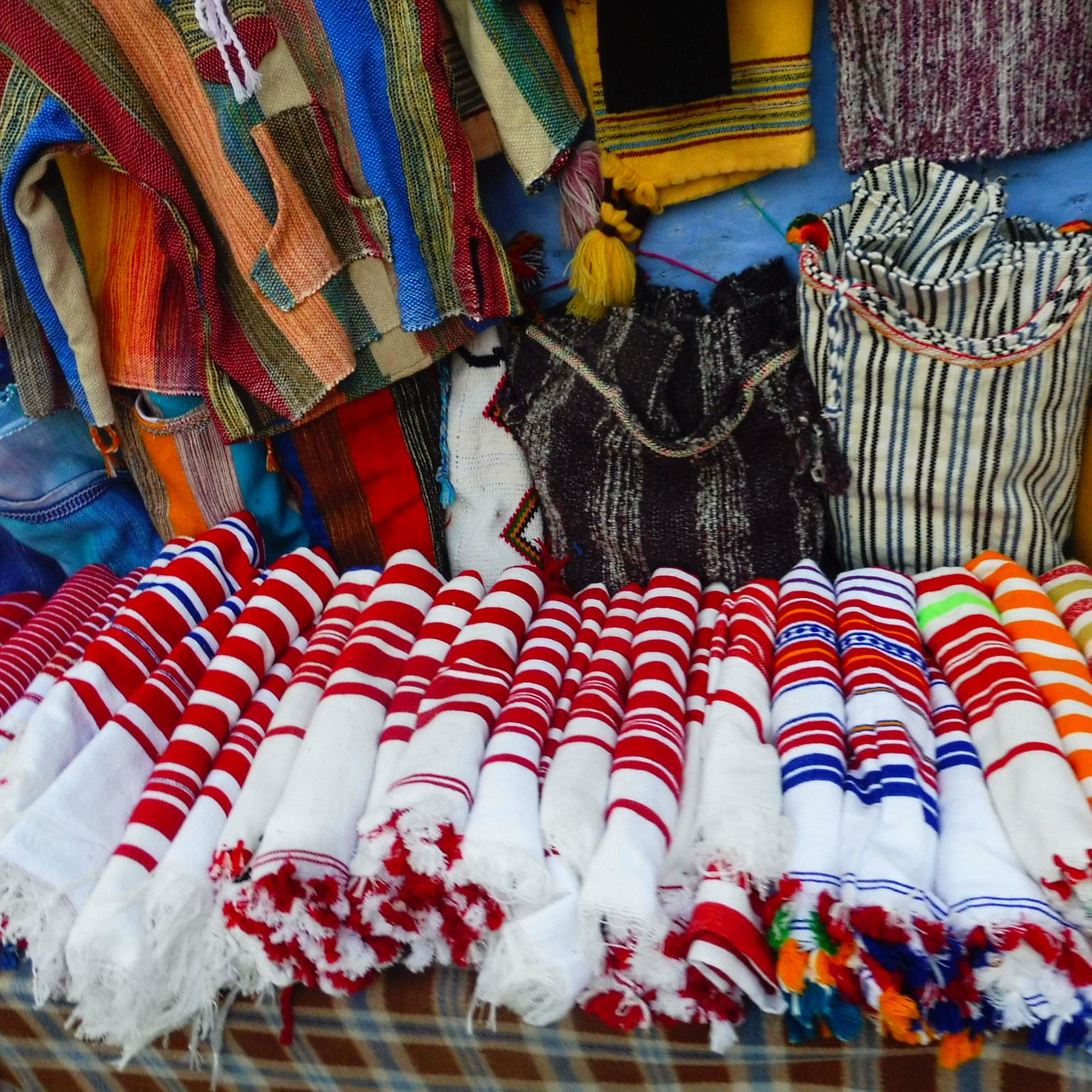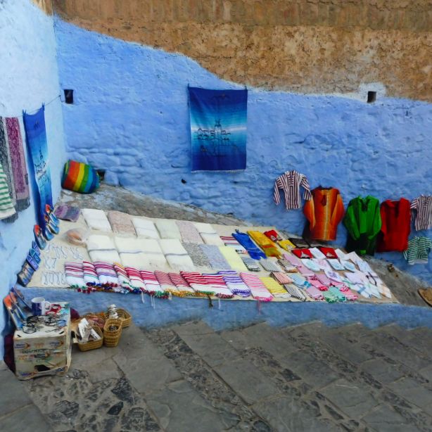 Potser la peça més típica de Chauen és aquesta mena de peces de tela de forma rectangular per posar damunt el llit o d’alguna butaca o sofà fetes amb diferents dissenys de ratlles. Es veuen alguns telars en botigues en els que algú les teixeix a mà. La majoria estan fetes a màquina. Se sap de seguida pel preu.