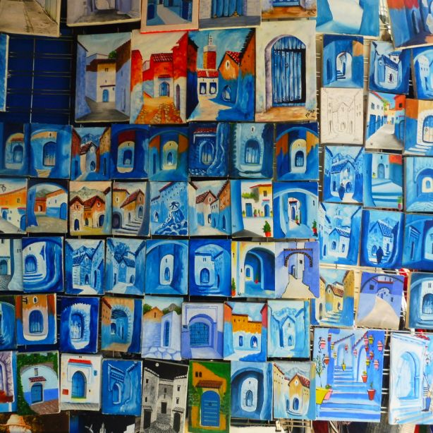 Petits quadrets en els que es mostren diferents racons tenyits de blau són un bon reclam per emportar-se un record d’aquest lloc tan especial.