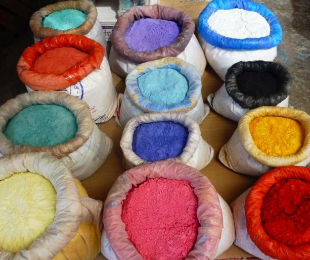 Les pòlvores per tenyir són elements molt vistosos per la varietat cromàtica que ofereixe.