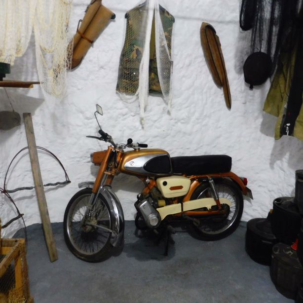 Més endavant en aquest spai s’hi guardava la moto que havia de passar pel menjador ja que estava al fons de l’habitatge, com abans ho havien fet els animals de treball.