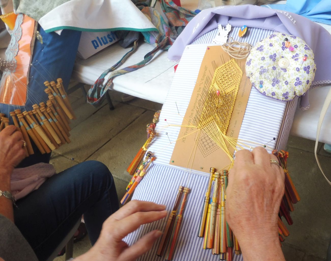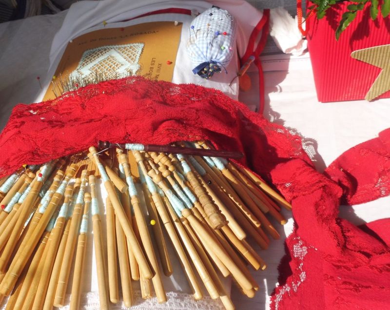 En les properes imatges podeu veure com puntaires s’afanyaven en avançar en els seus bonics treballs sota la mirada de la gent que observava la delicades, la paciència i el bon saber fer amb els boixets.