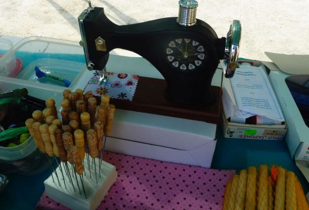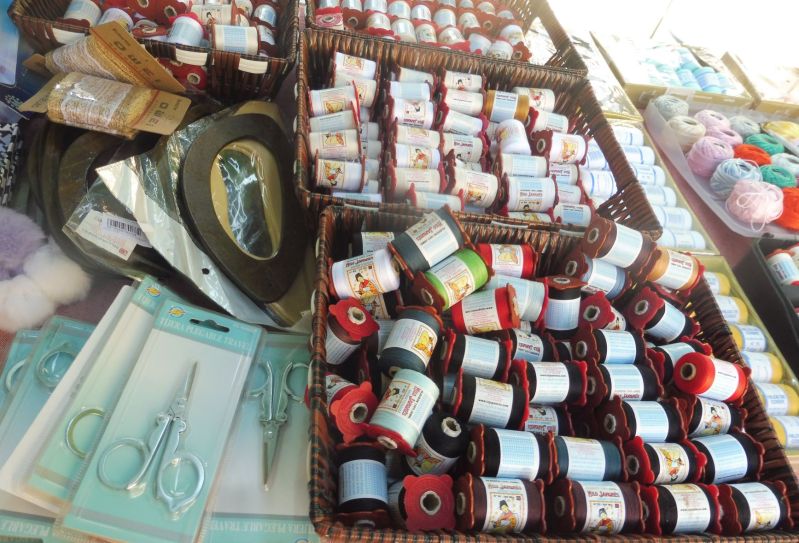 Tenint en compte que els estris que es fan servir per fer aquests tipus de treballs són ben especials i que noes troben a qualsevol lloc l’organització possibilita el muntatge de diferents parades en les que es pot trobar tota classe d’elements necessaris per treballar la punta de coixí així com també altres que es fan servir per fer manualitats.