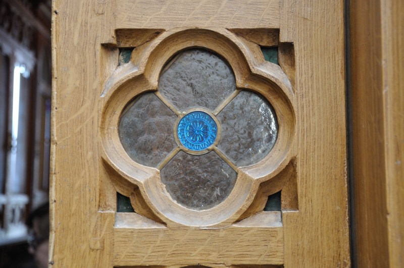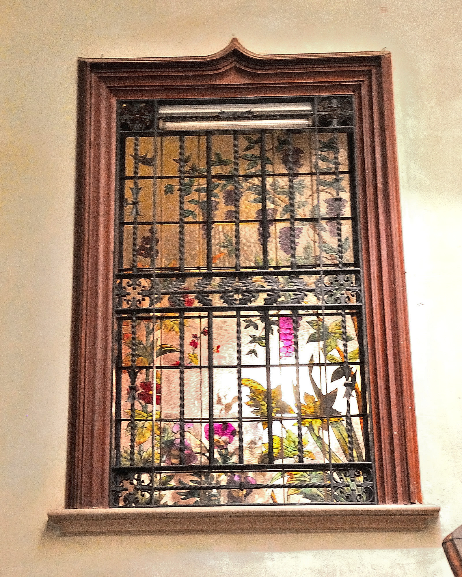 Les vidrieres tenen un important protagonisme. Aquesta correspon a la finestra de l’escala.