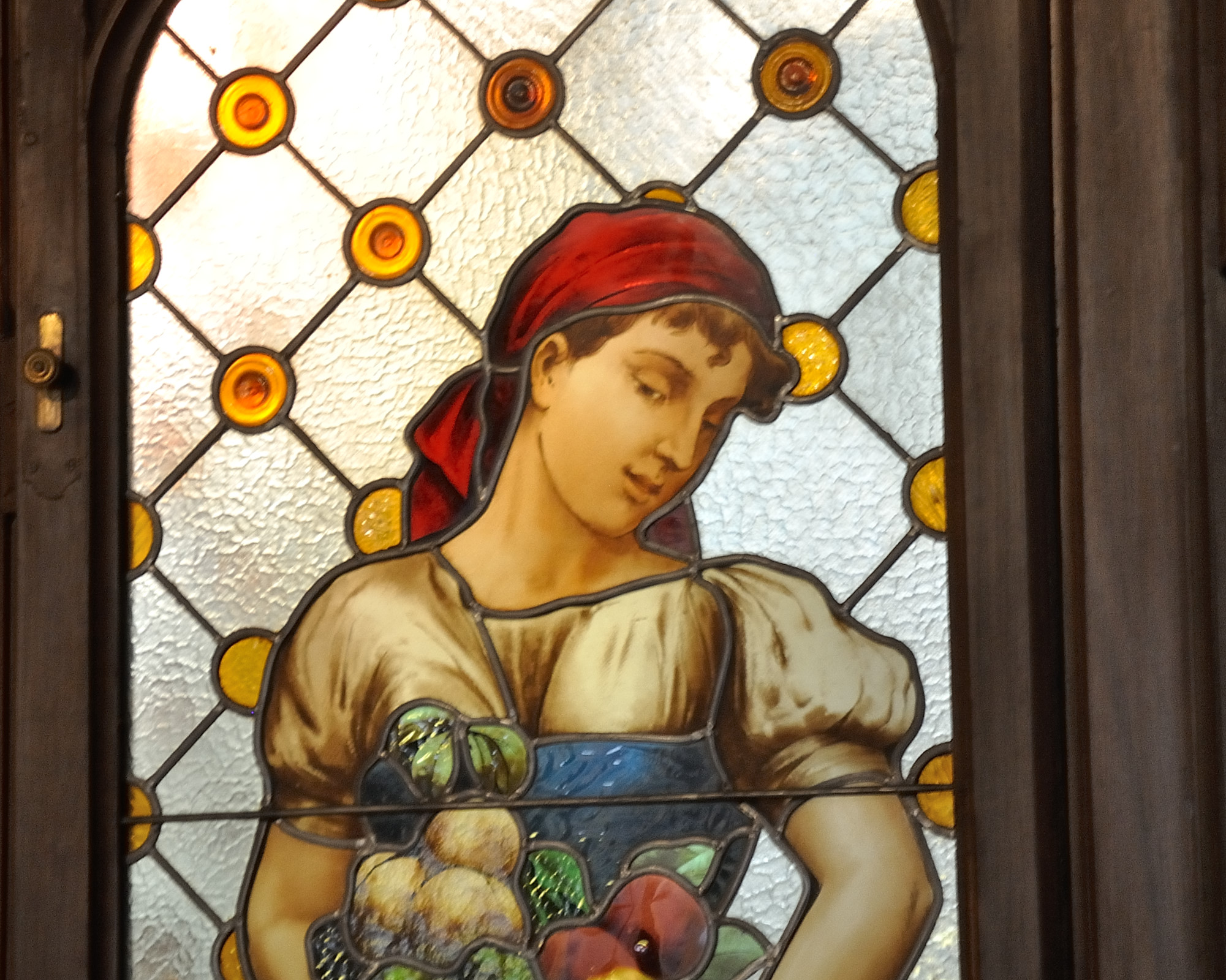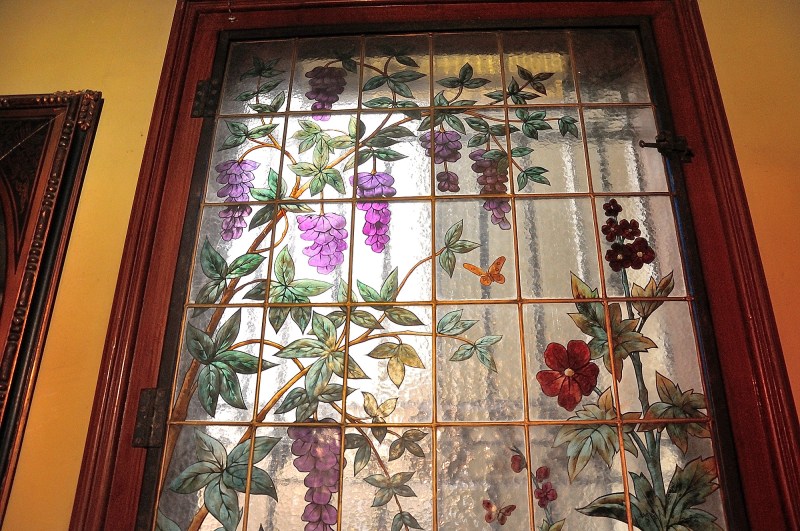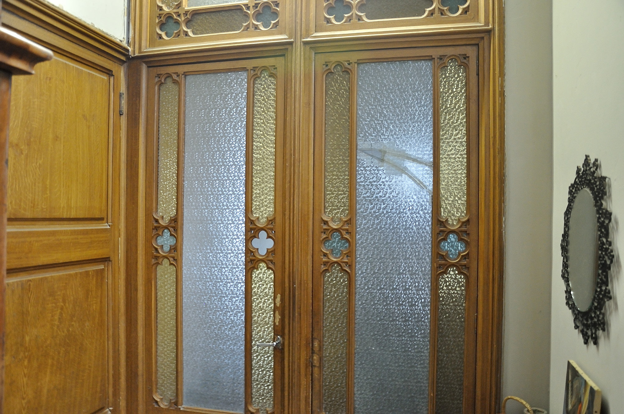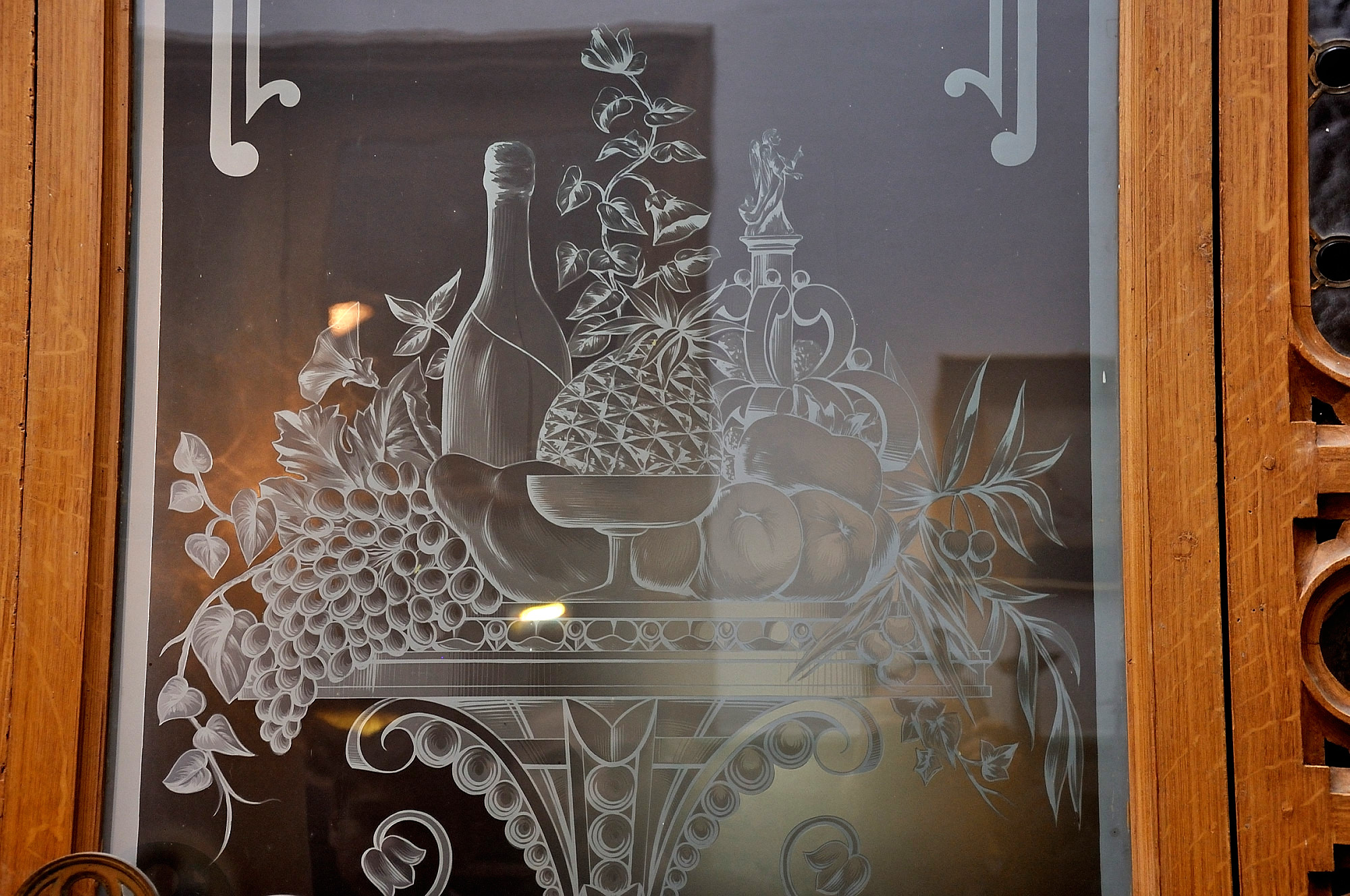 Un vidre amb un dibuix fet a l’àcid. Està a la porta que comunica amb el menjador.