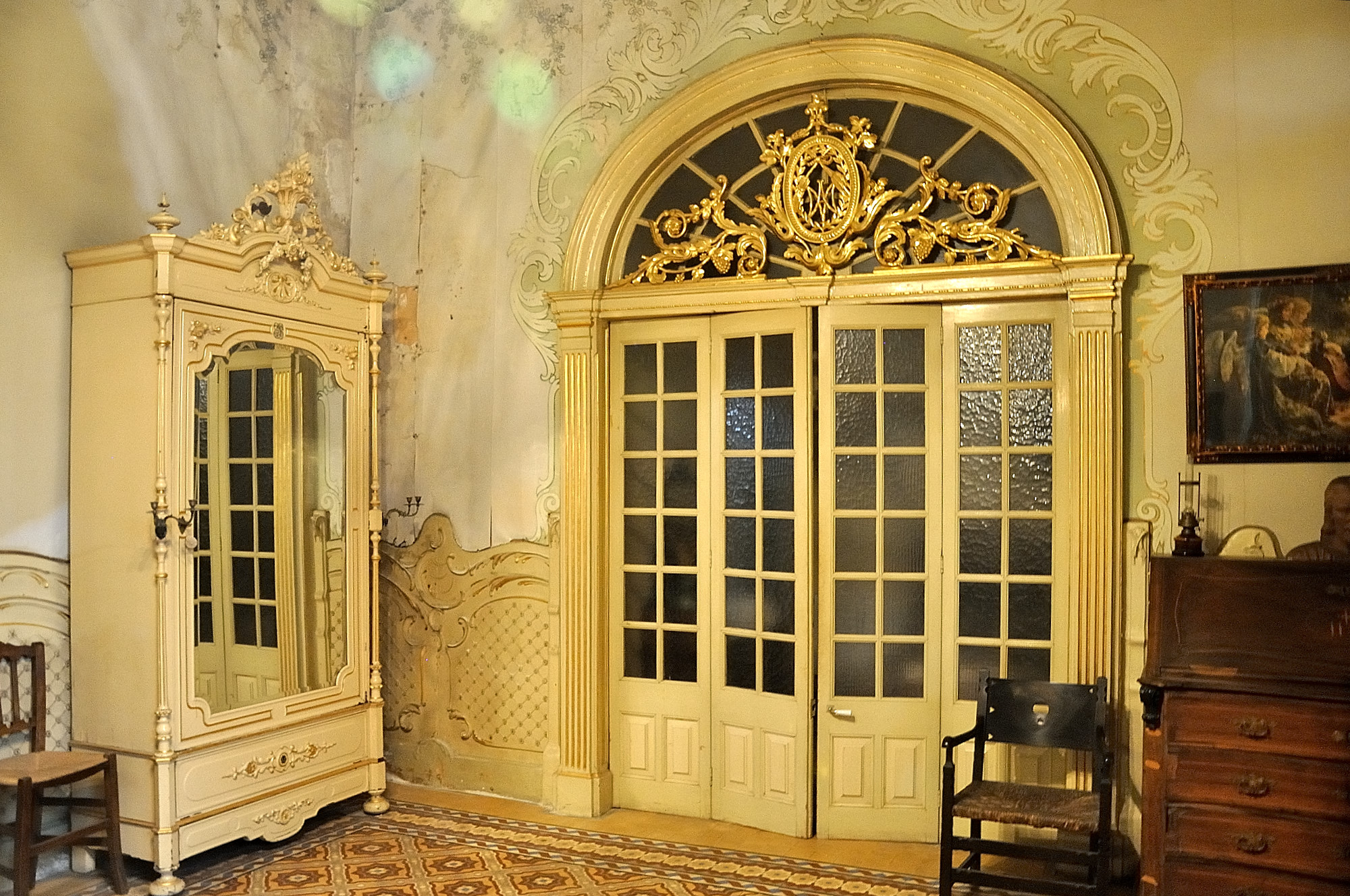 aquesta gran galeria amb doble sostre resulta un espai diàfan i lluminós. Alguns mobles de l’habitatge procedeixen de la casa que la família té a Ribé on, abans de la guerra hi havia preciositats. Els que es van fer amb la casa els van cremar per escalfar-se. Els que van poder salvar romanen aquí. aquest canterano, del que noés s’en veu un tros, es va poder recuperar.