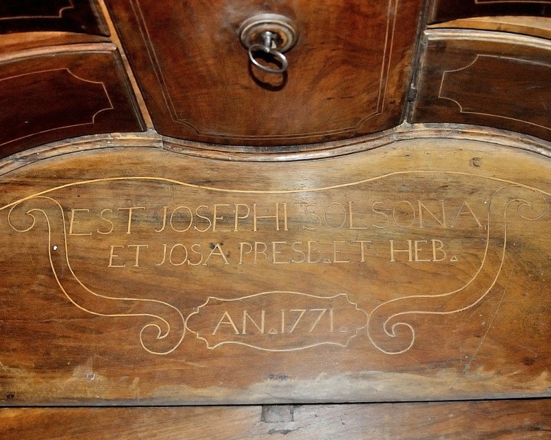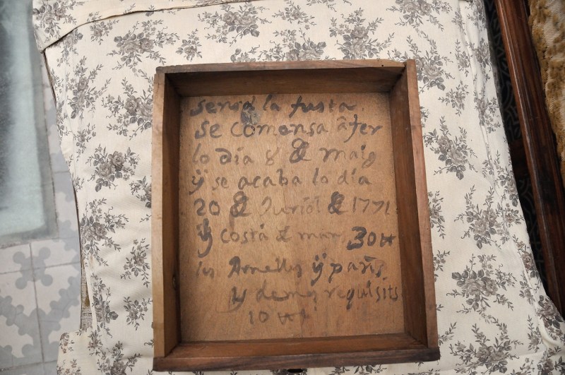 … a dins un calaix hi van trobar aquesta inscripció feta per l’ebaniste a qui se li va encarregar el moble.