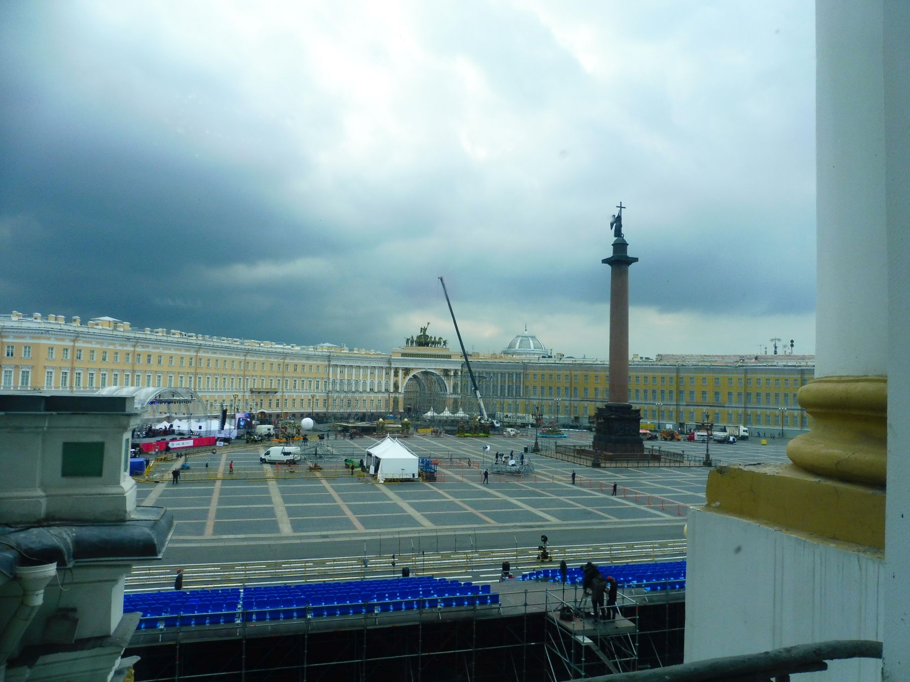 La façana principal de l’Hermitage es troba en aquesta gran plaça. Un lloc que van habilitar, en aquests dies del Mundial de futbol, per celebrar-hi diferents activitats.