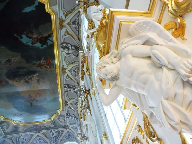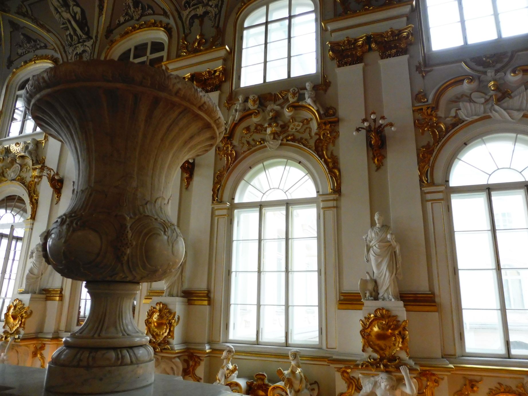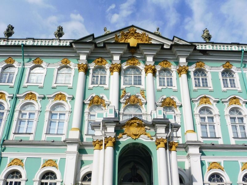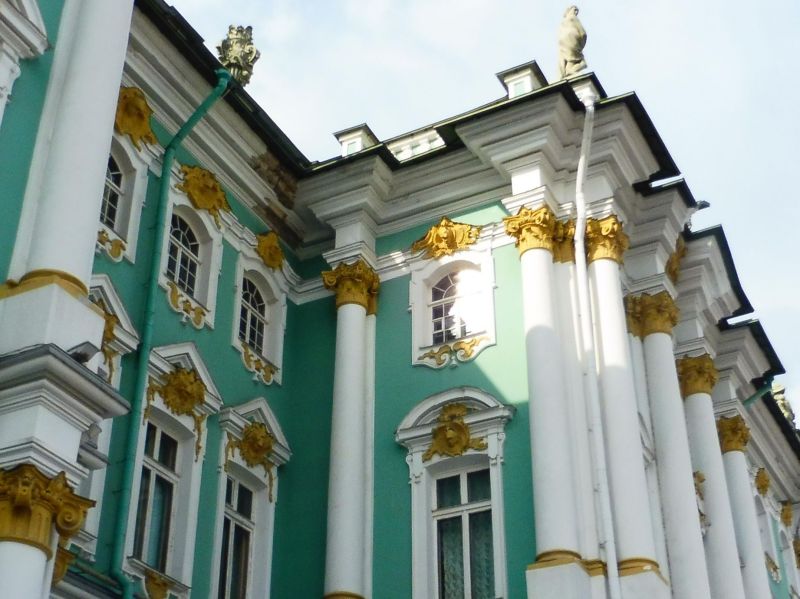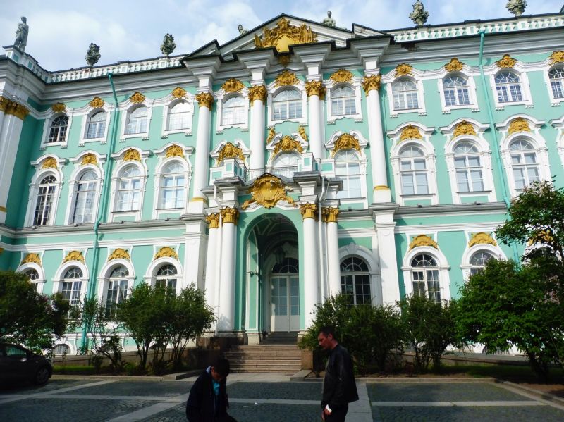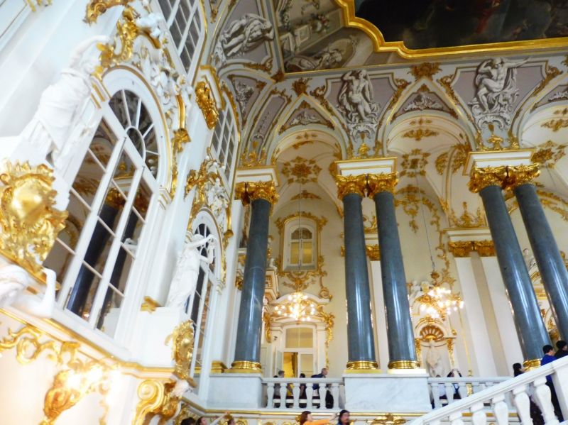 L’exterior ja impressiona i l’interior resulta espectacular. El fet de que havia estat el Palau d’Hivern dels Romanov, tzars russos, és el motiu de que sigui una edificació meravellosa. Tot i que el poble passava molta misèria, la família reial i tota la cort, gaudien amb un luxe escandalós. Al final tot això els hi va passar factura.