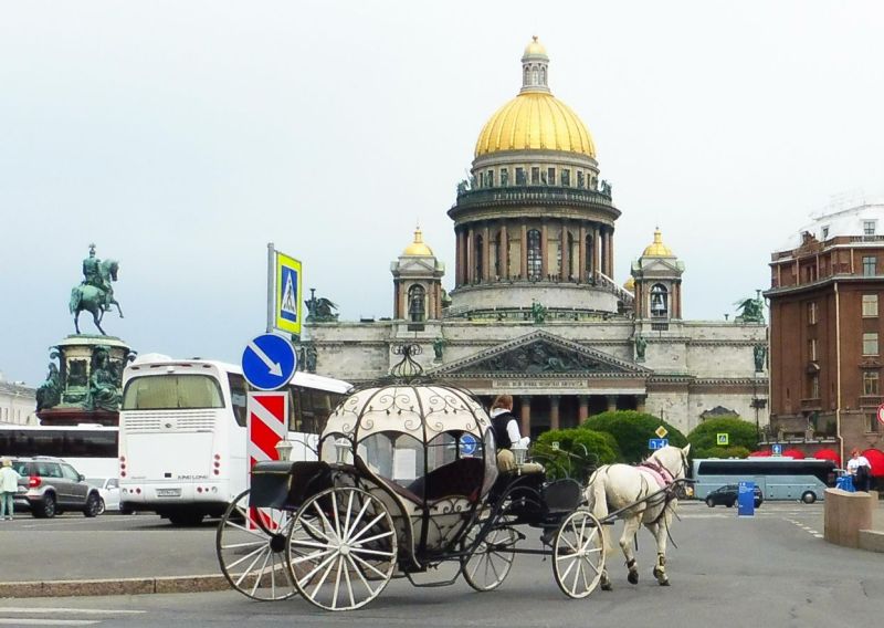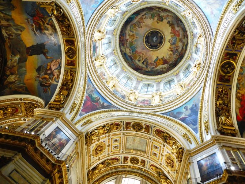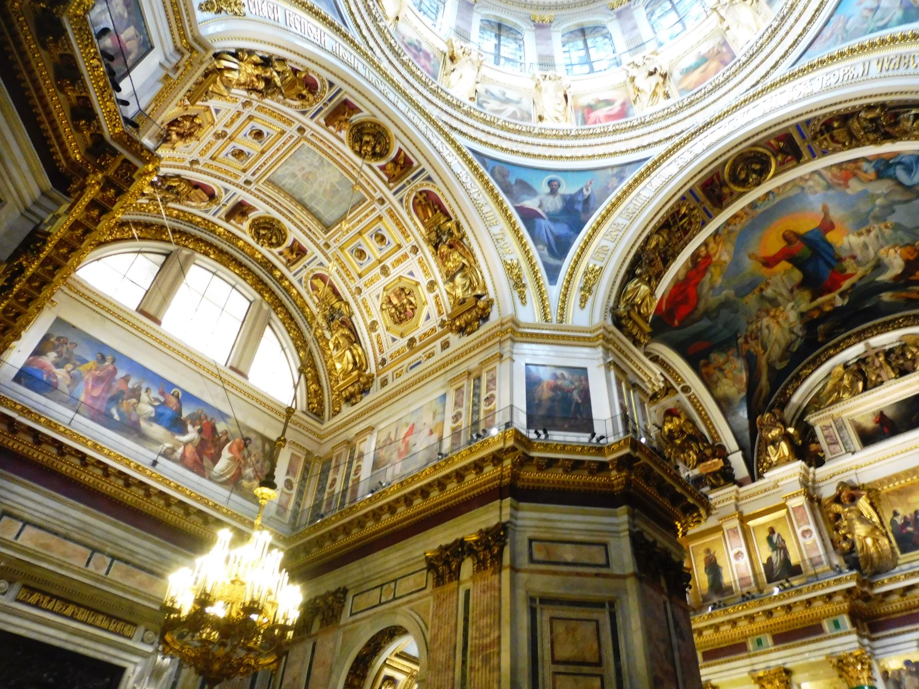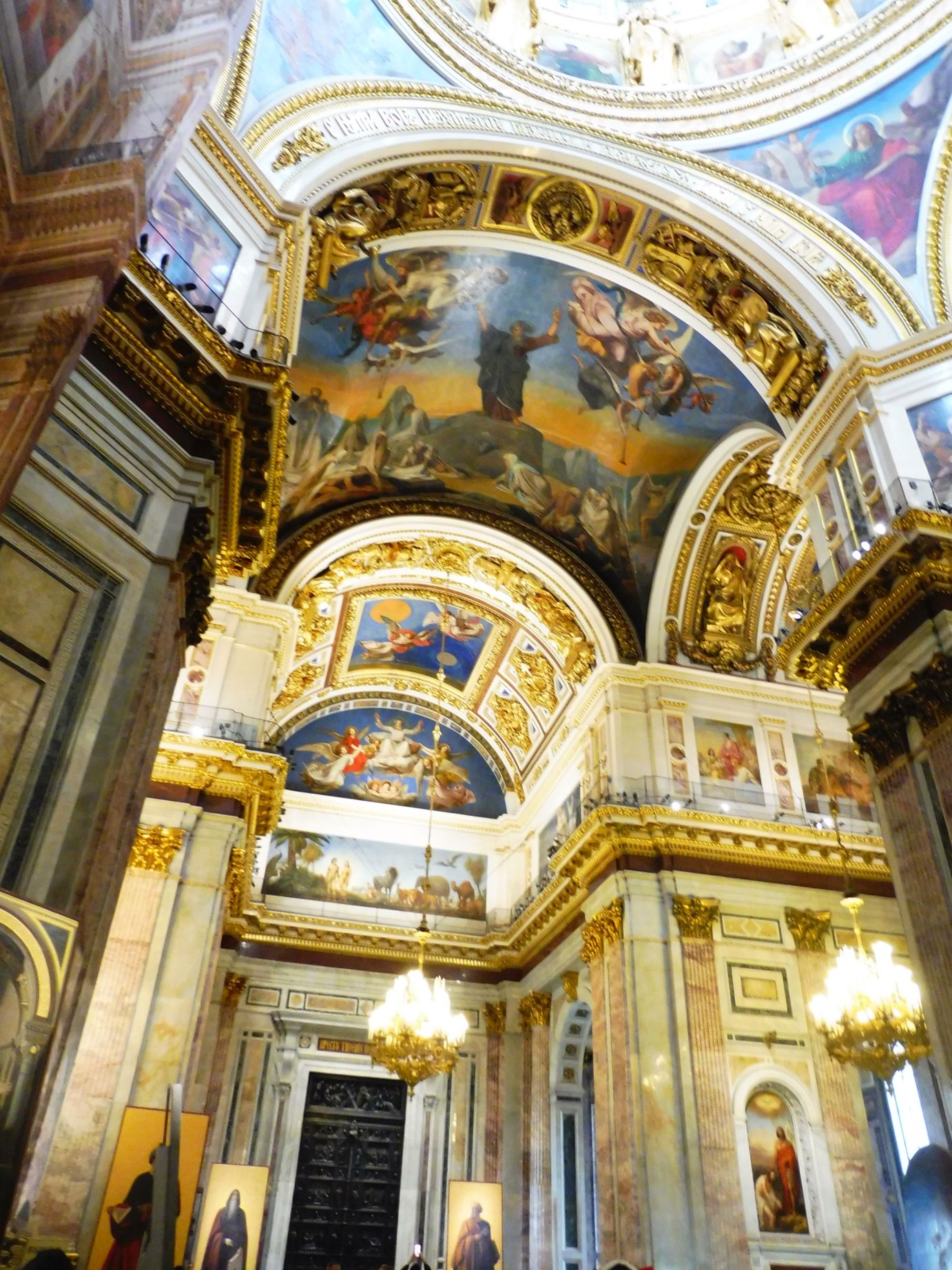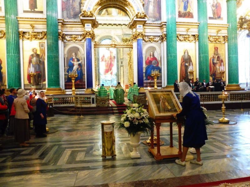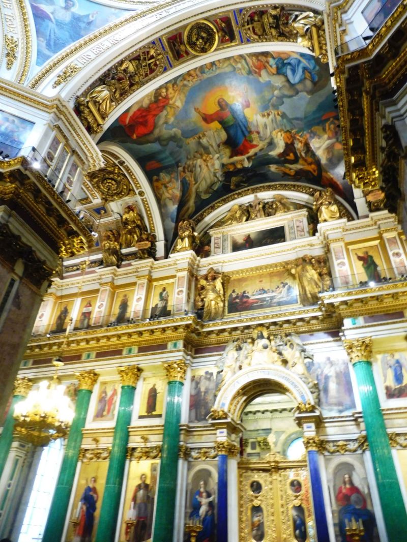La primera vegada que vaig anar a Sant Petesburg vaig quedar impressionada amb la catedral de Sant Isaac. De fet és la tercera més gran del món. La primera és Sant Pere de Roma i la segona Sant Pau de Londres. Els seu interior el recordava realitzat amb un luxe inoblidable. En tornar-hi, una sempre pensa que el record no hagi mitificat la realitat. Però no, és ben bé tal com em va meravellar ja fa anys.