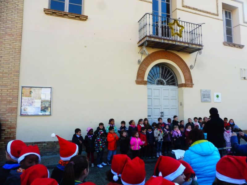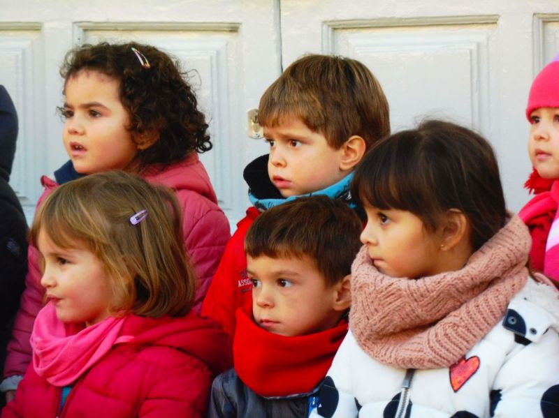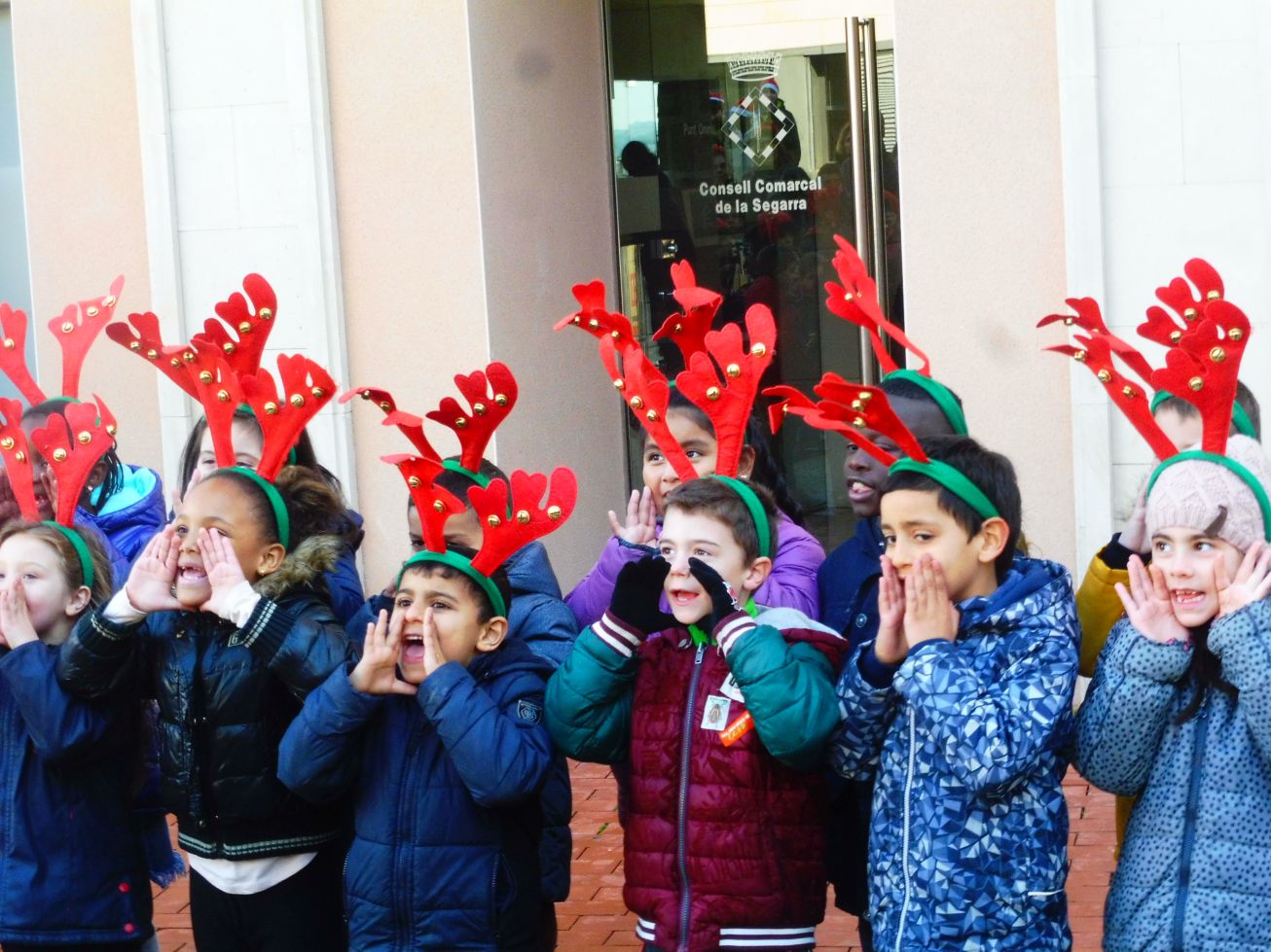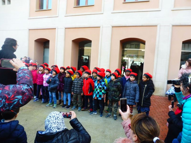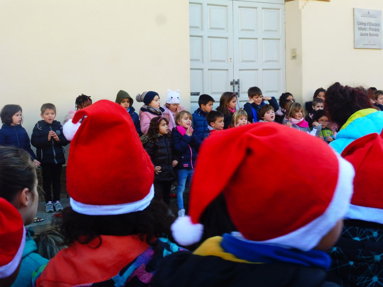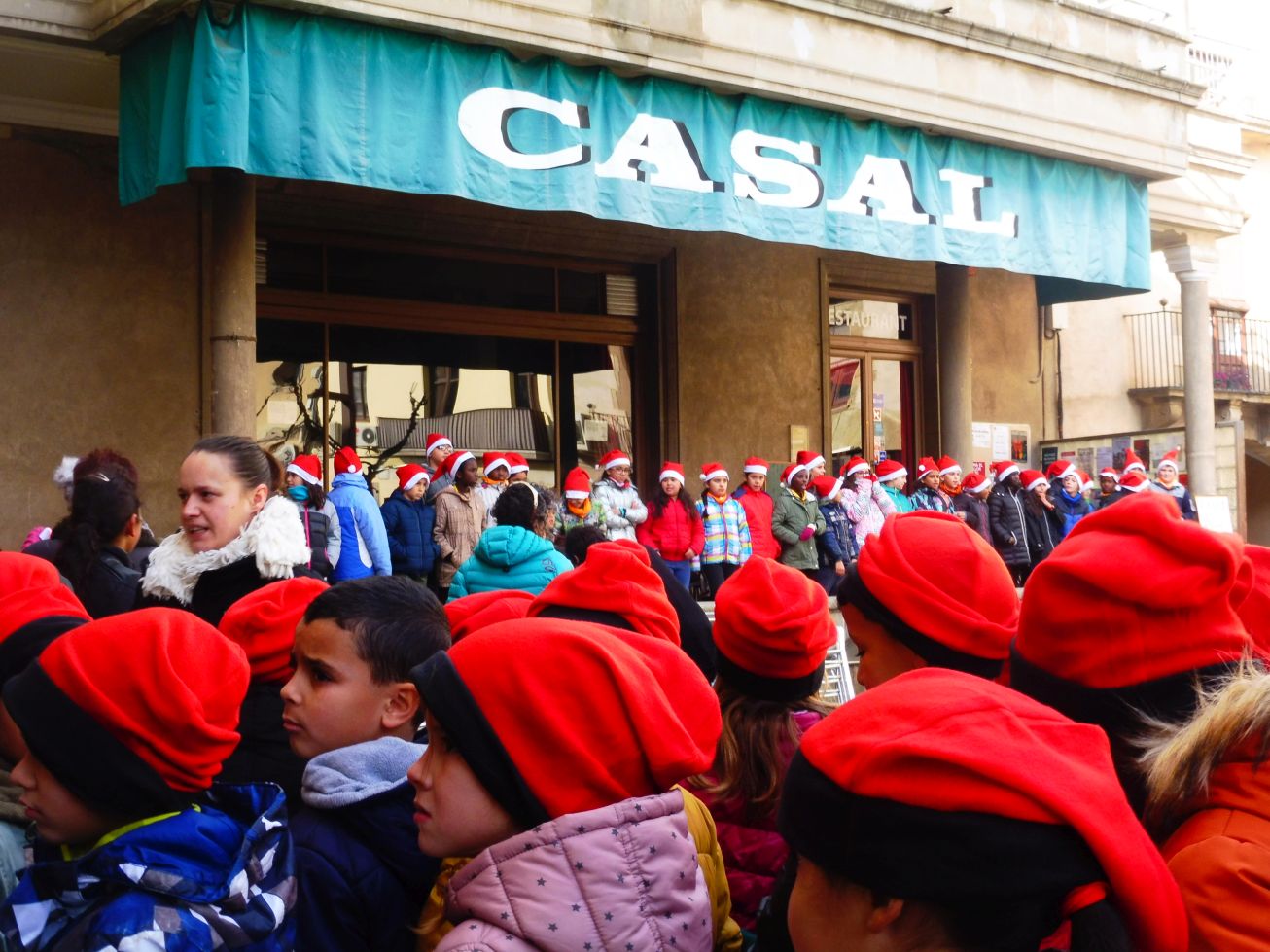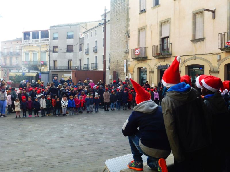 Els de cicle inicial interpreten les nadales a la plaça Joan Salat i ho fan amb molt entusiasme.