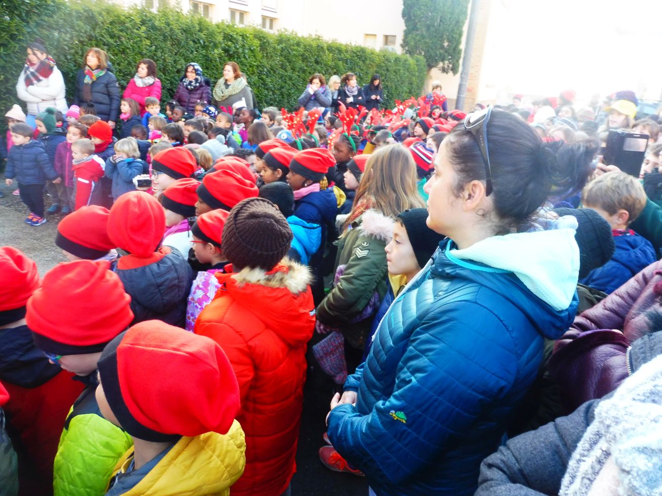 Els més petits han interpretat les nadales davant la porta del col·legi. La resta d’alumnes, professores i professors, familiars i altres assistents formaven part del nombrós públic que ha gaudit amb les seves actuacions.