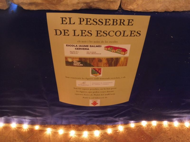 Cada any, al fons de l’espai es munta un pessebre de considerables dimensions que acull les figures que fan els nens i nenes de les escoles de primària de Cervera.